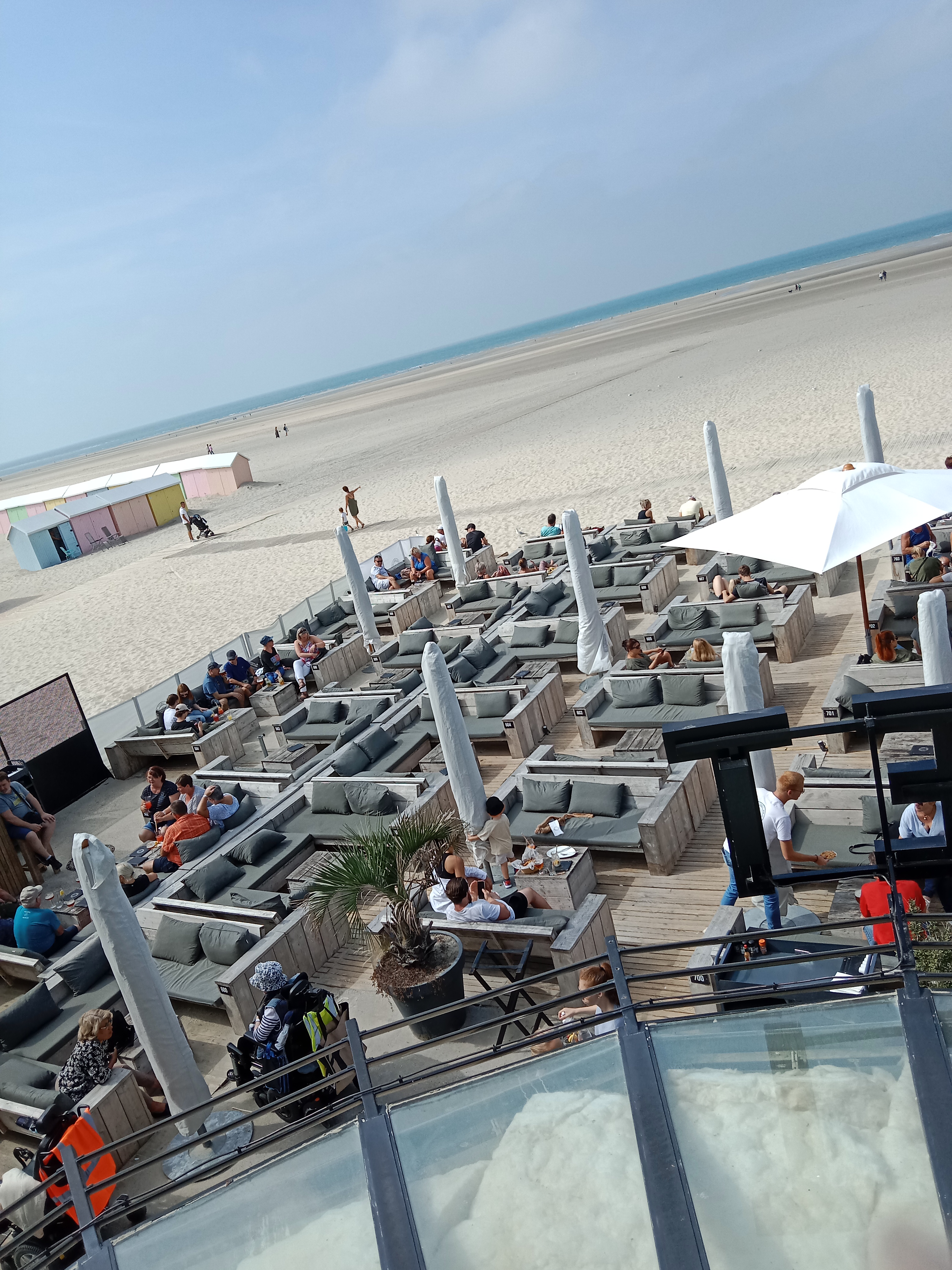 Superbe endroit où je me pose .!!! Et pris des coups de soleil terrasse.sur le sable génial serveurs sympas mais canapés commençant a être dégradé tâchés trous de cigarettes par des personnes incorrectes comme d'hab !!!! Font ils ça chez eux ?? Je n'irais pas !! Oui peut être manque de nettoyage au niveau tables... Très bon endroit relax néanmoins .j'y suis allée trois fois les trois fois à la mer 💙 thé et bon choix tester la limonade pomme rhubarbe le p'tit quinquin!! Très frais .un bonheur .frites maison sympa prix un.peu cher mais on ne vous pressez a partir ,!! Donc que du bonheur une fois installée ...le plein de vit d assuré !! Et iode .!! Top sans hésiter ... Cool 👍💚🌹🌤️ .!!!