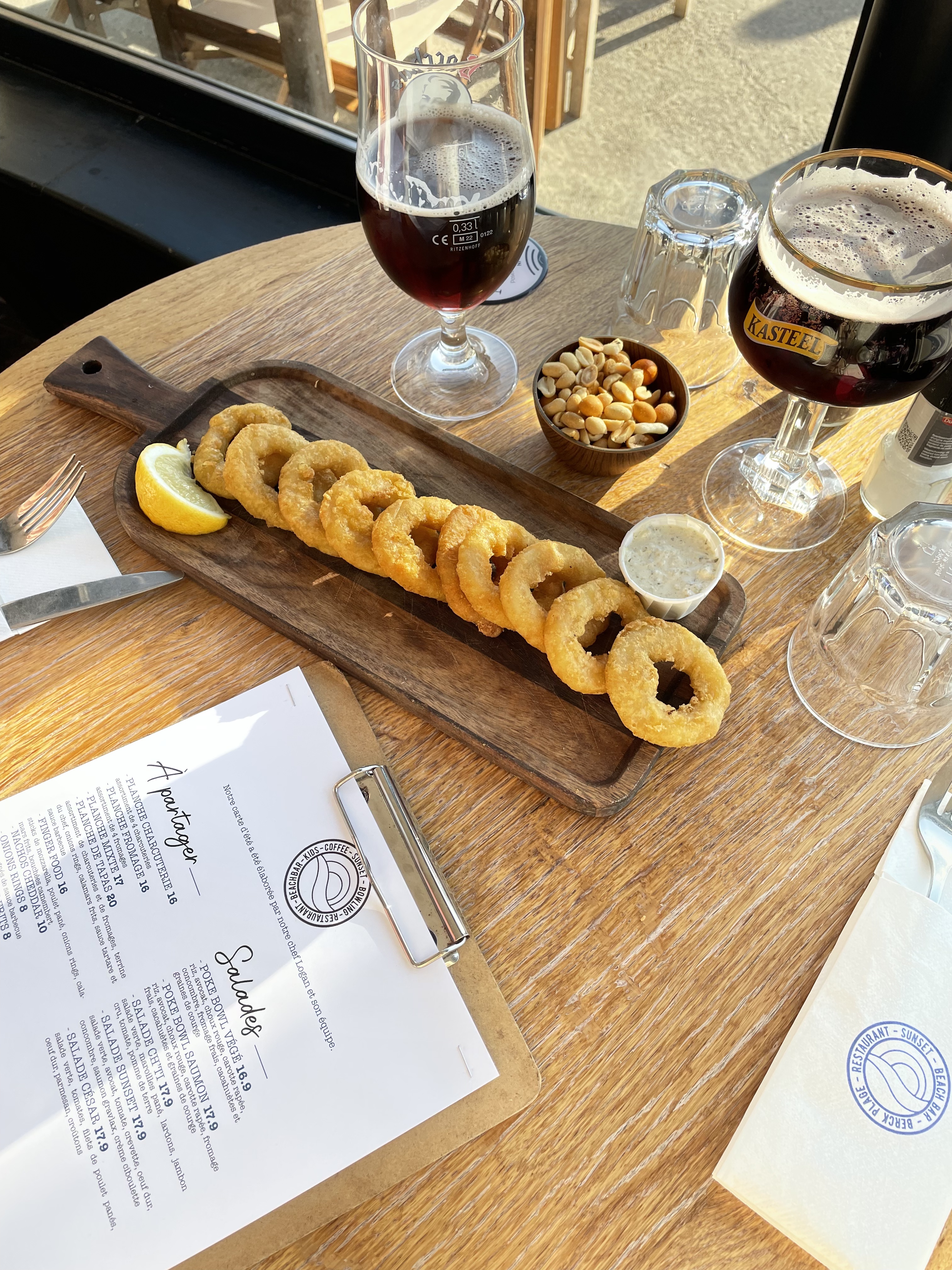 En somme nous avons aimé y manger, lieu agréable et clean... personnels attentifs et en grand nombre pour répondre aux attentes. Coin terrasse hyper agréable sur une partie de la plage, salle climatisé et plutôt grande... mais attention il faut réserver surtout pour les beaux jours car il y a beaucoup de monde... Le repas pour nous se passe très bien, apéritif, tapas, entrée jusqu'au moment où on a mangé le plat... frites moules roquefort et maroilles... et bien une déception... les moules n'ont aucunes saveur, pas cuites dans une sauce vin blanc, ni sel ni poivre, très fade en somme et les versions maroilles et roquefort nous avons à peine senti la saveur, sauce très liquide pour l'un et très pâteuse pour l'autre... bref déçu 😞 et que dire du fait qu'il y avait énormément de moules vides et des coquilles déchiqueté dans les plats... pour preuve je me suis enfoncé une esquille de coquille dans la langue en mangeant et je me suis transpercé la langue qui s'est mise à fortement saigné après... Je l'ai signalé à l'hôtesse mais à peine une réaction, elle aurait au moins pu faire un geste commercial car de ce fait je n'ai même pas voulu finir mon plat... vous vous imaginez avalé une esquille de coquille pointu et tranchante dans votre estomac... bonjour les dégâts. Nous n'avons même pas pris de dessert pour le coup... j'avais trop mal à la langue suite à ça. Voilà...