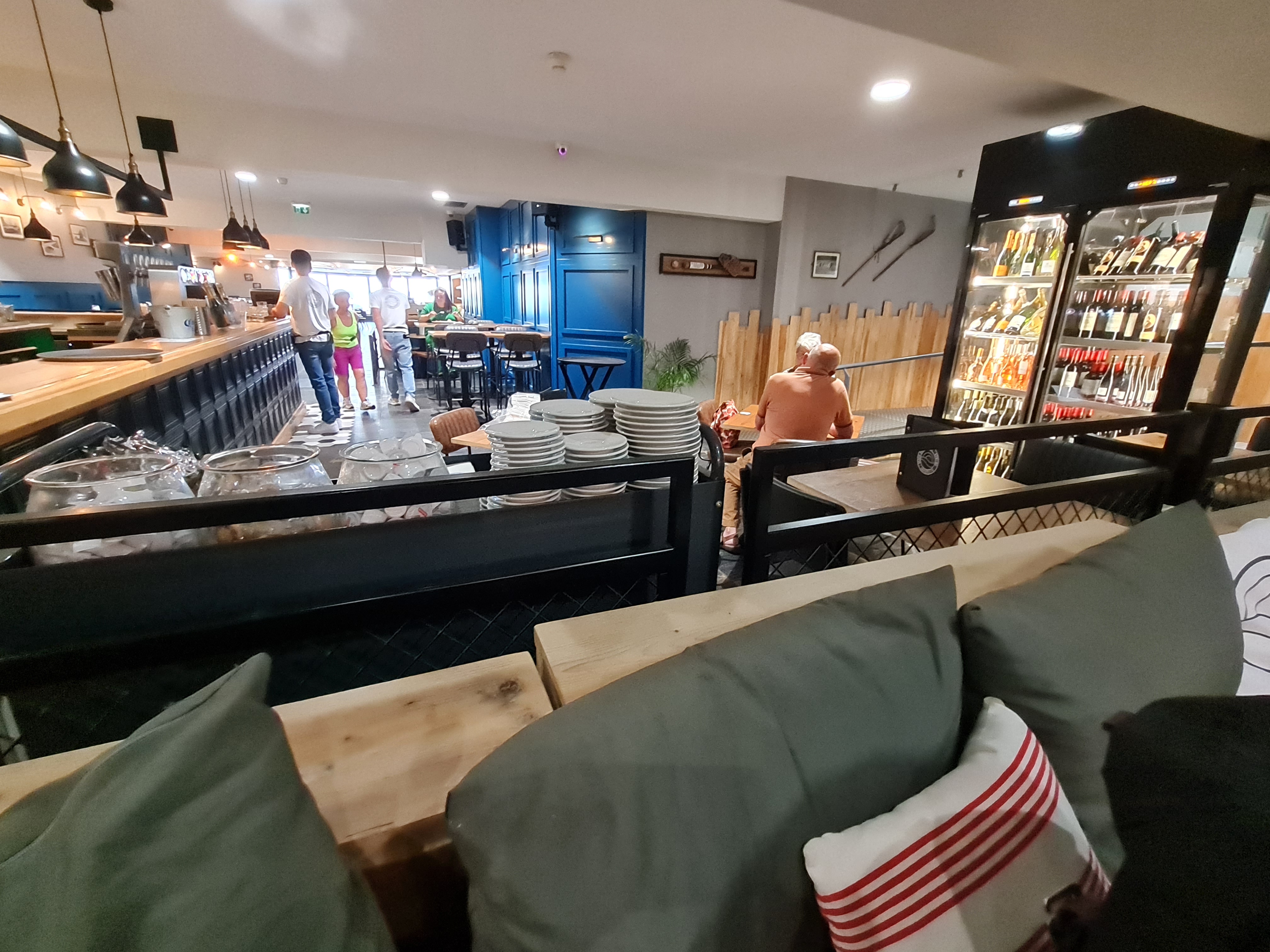 Restaurant agréable avec vue sur la mer. La carte est variée, avec des menus à 10€ pour les enfants. La qualité des produits est bonne, et les portions très généreuses ! Tout cela explique sans doute le prix un poil élevé (~18€ les moules frites). Seul défaut, le service. Peu professionnel, peu avenant, peu rapide : la plupart des serveurs semblent être des occasionnels. A noter que le restaurant est adossé à un bowling, un bar, ou encore un terrain de jeu indoor pour les enfants !