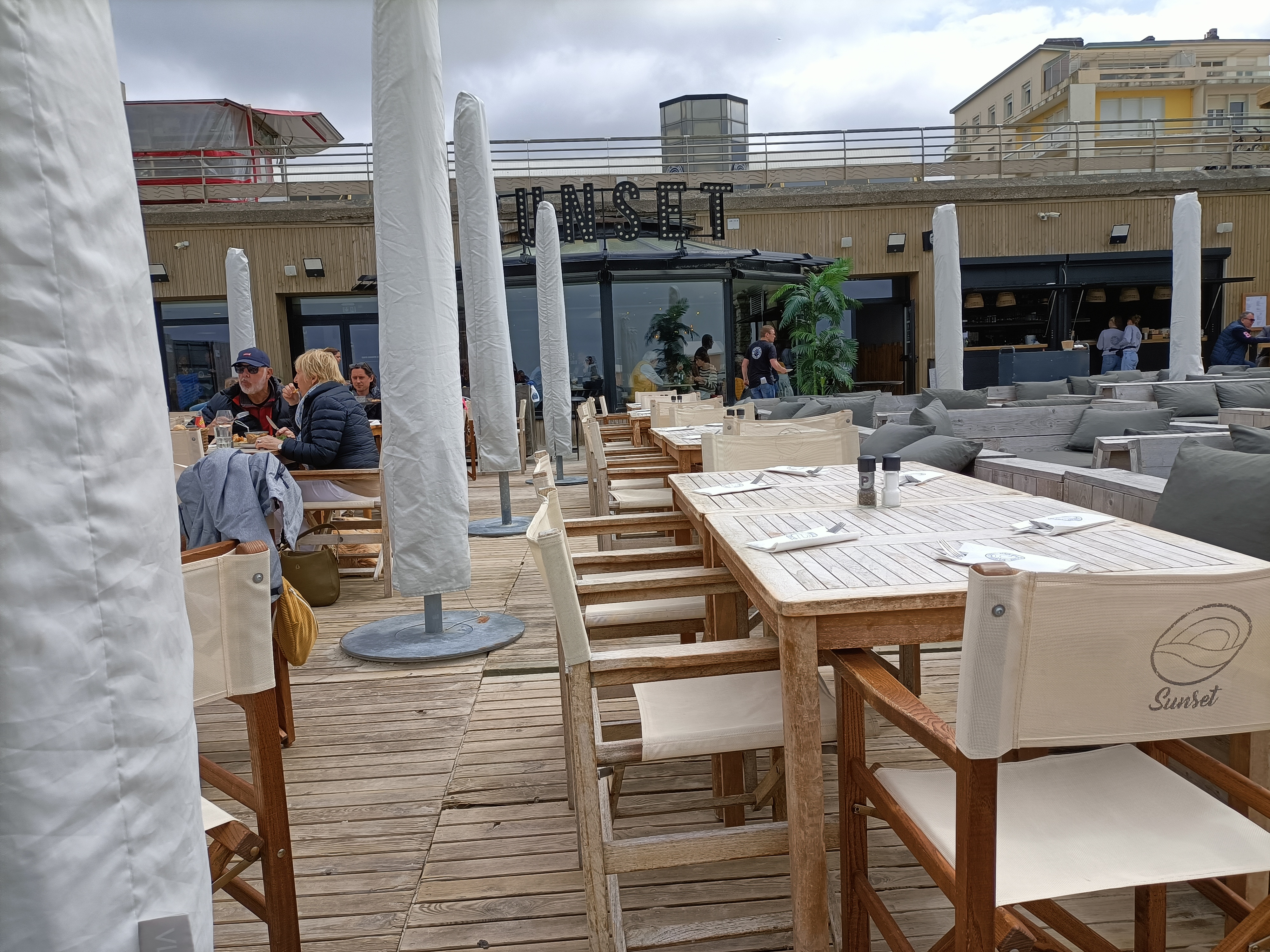 Le sunset est une bonne surprise dans la ville de Berck sur Mer. On ne s'attendait pas à trouver un bar sur la plage, oui, car la ville était plutôt tristounette à la fin de saison. Bon spot pour boire un verre, pieds dans le sable, si le temps s'y prête. Ils proposaient des verres, plats... Mais nous avons que bu. Le verre de vin chaud était un peu radin mais excellent.