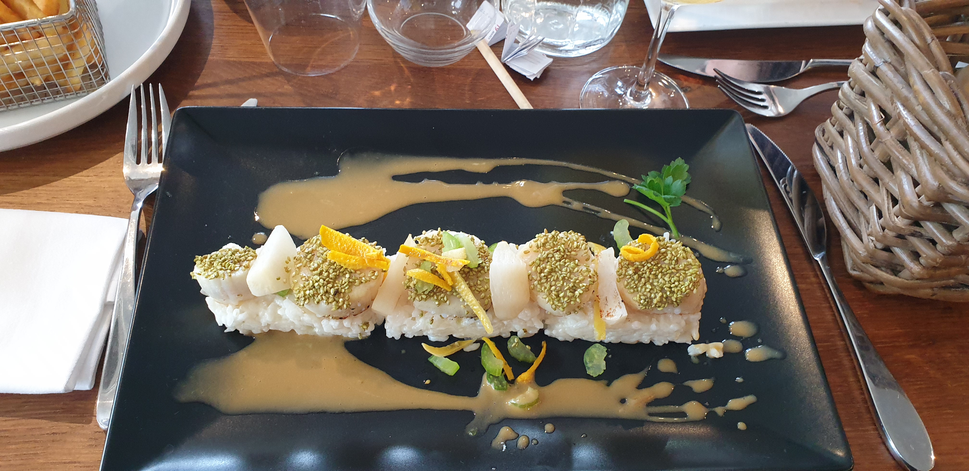 J'avais adoré la terrasse cet été cocktail top et petite restauration proposée (assiette de frite ce que nous avons choisi) et j'ai donc succombé à l envie de goûter à la partie restauration il y a peu, pour moi c etait risotto noix de saint jacques miammmmmmm !! Et mon conjoint cote de bœuf à partager, oh un vrai régal ! La personne qui s'est occupé de nous tres agréable, même l equipe que nous avons trouvé serviable. Et le plus accessible aux PMR il y a de l espace donc très appréciable. Je n ai pas pu faire de photo de la sublime vu sur la mer effet contre jour, malgres le temps nuageux, cette vue durant le repas était très agréable ! A refaire