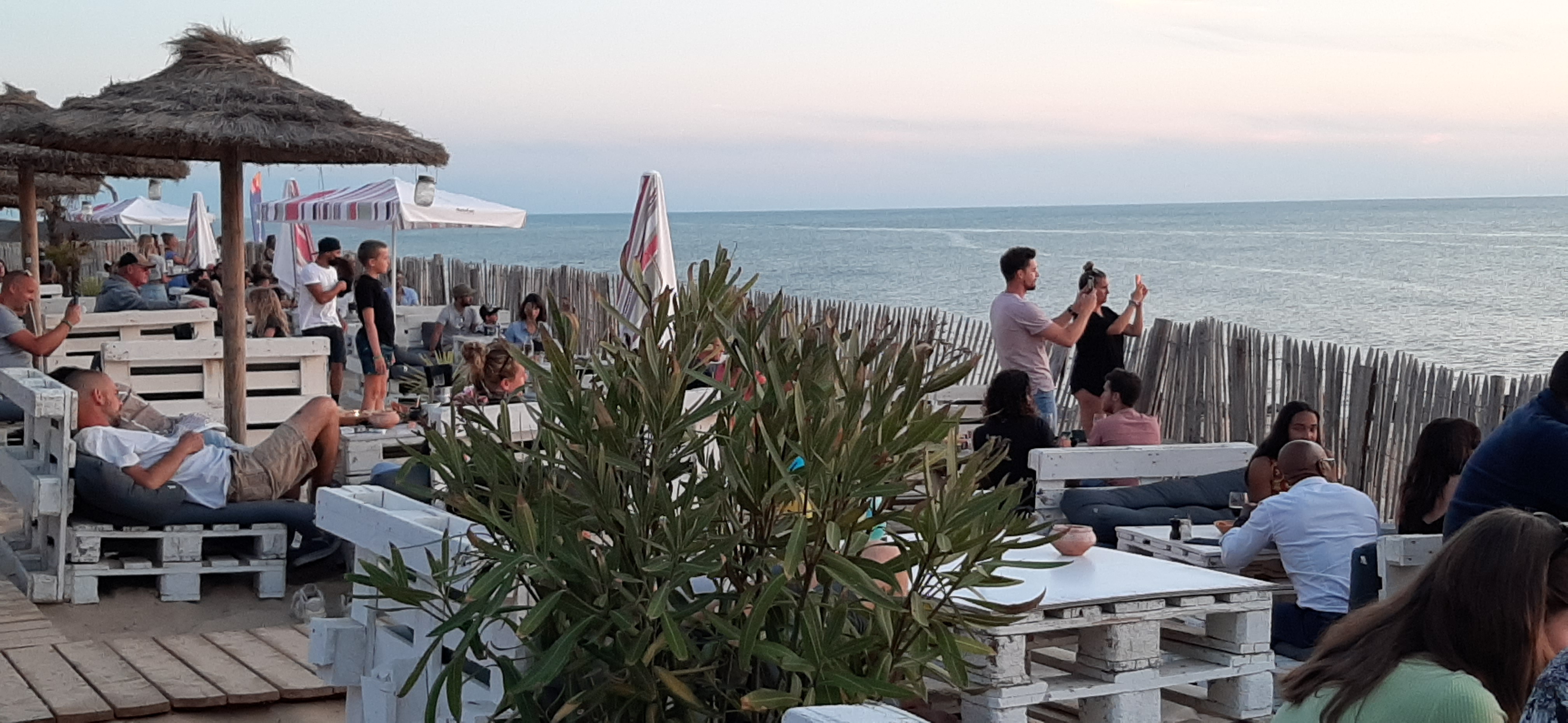 Au top!! Vue magnifique sur le couché de soleil. Les pieds dans le sable et sur canapés en palettes ...pas de résa premier arrivé premier servi ! Pris corrects ...super spot