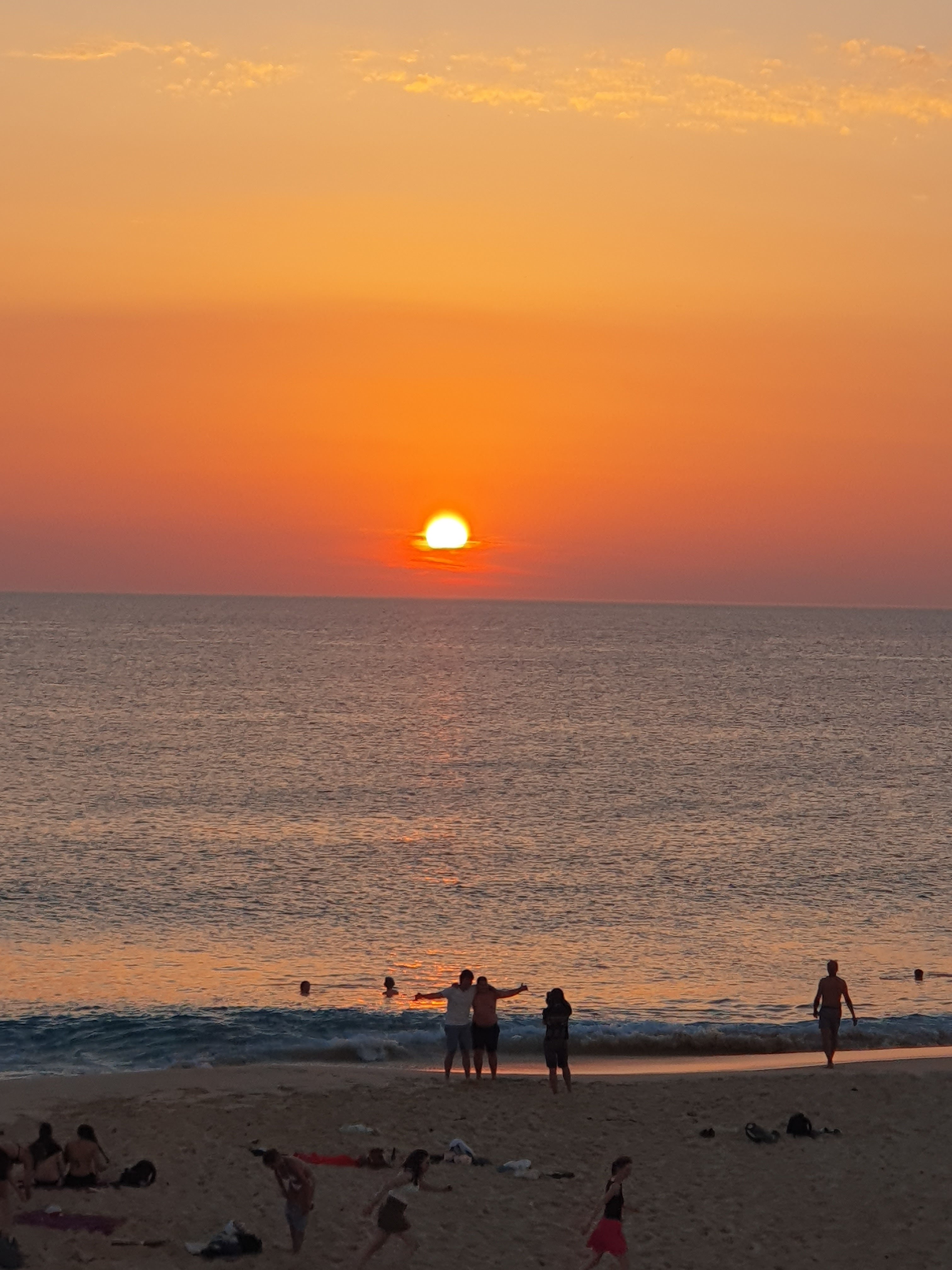 Vue imprenable sur le coucher de soleil sur l'Atlantique. Nourriture décente, bonnes bières, bonne musique détendue