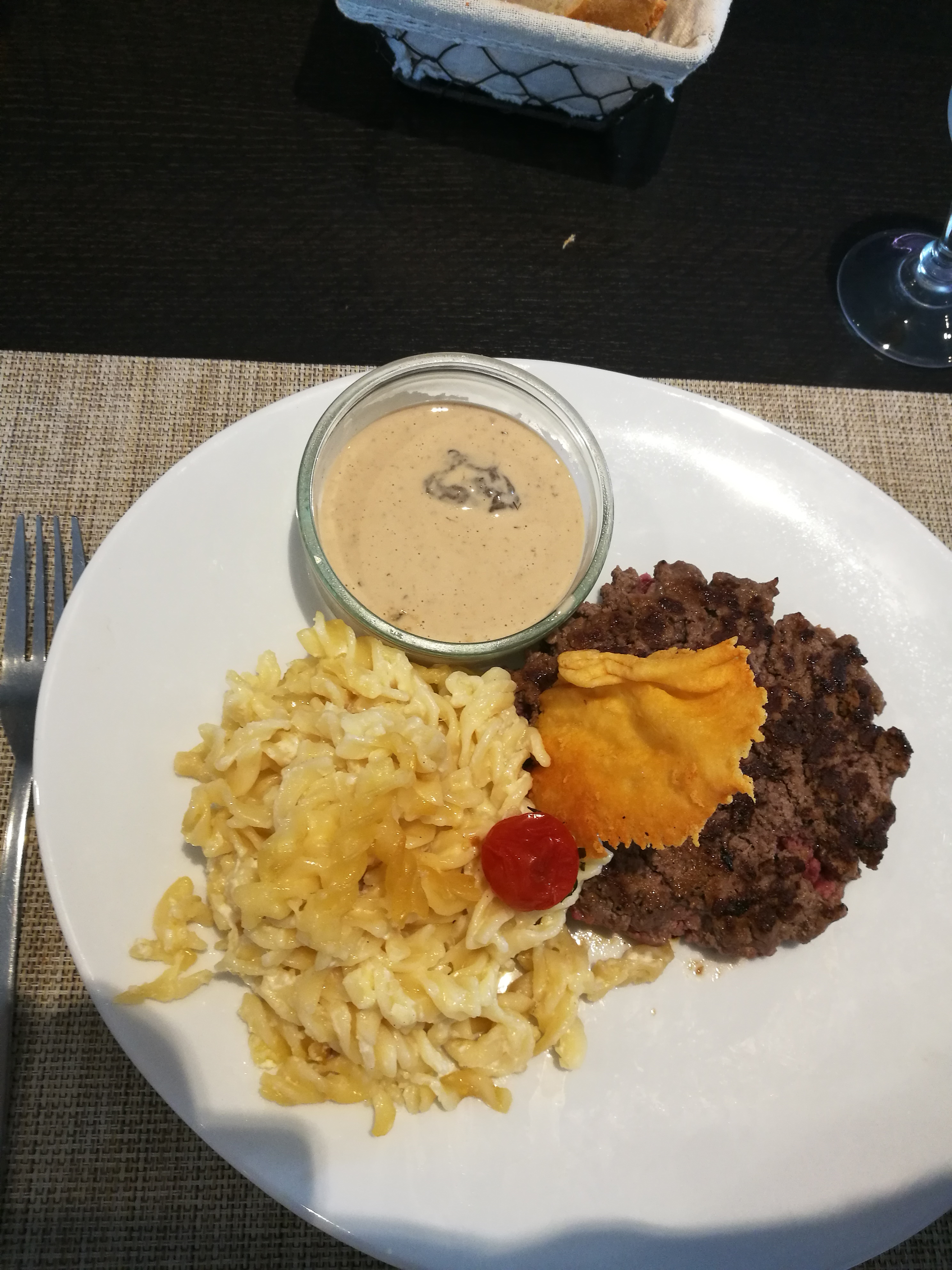 Nourriture délicieuse. Bonne salade et morceau de viande savoureux. Le plateau de service pour une entrée est plus savoureux, mais ensuite vous mangez rapidement plus que ce qui est bon pour vous🤣