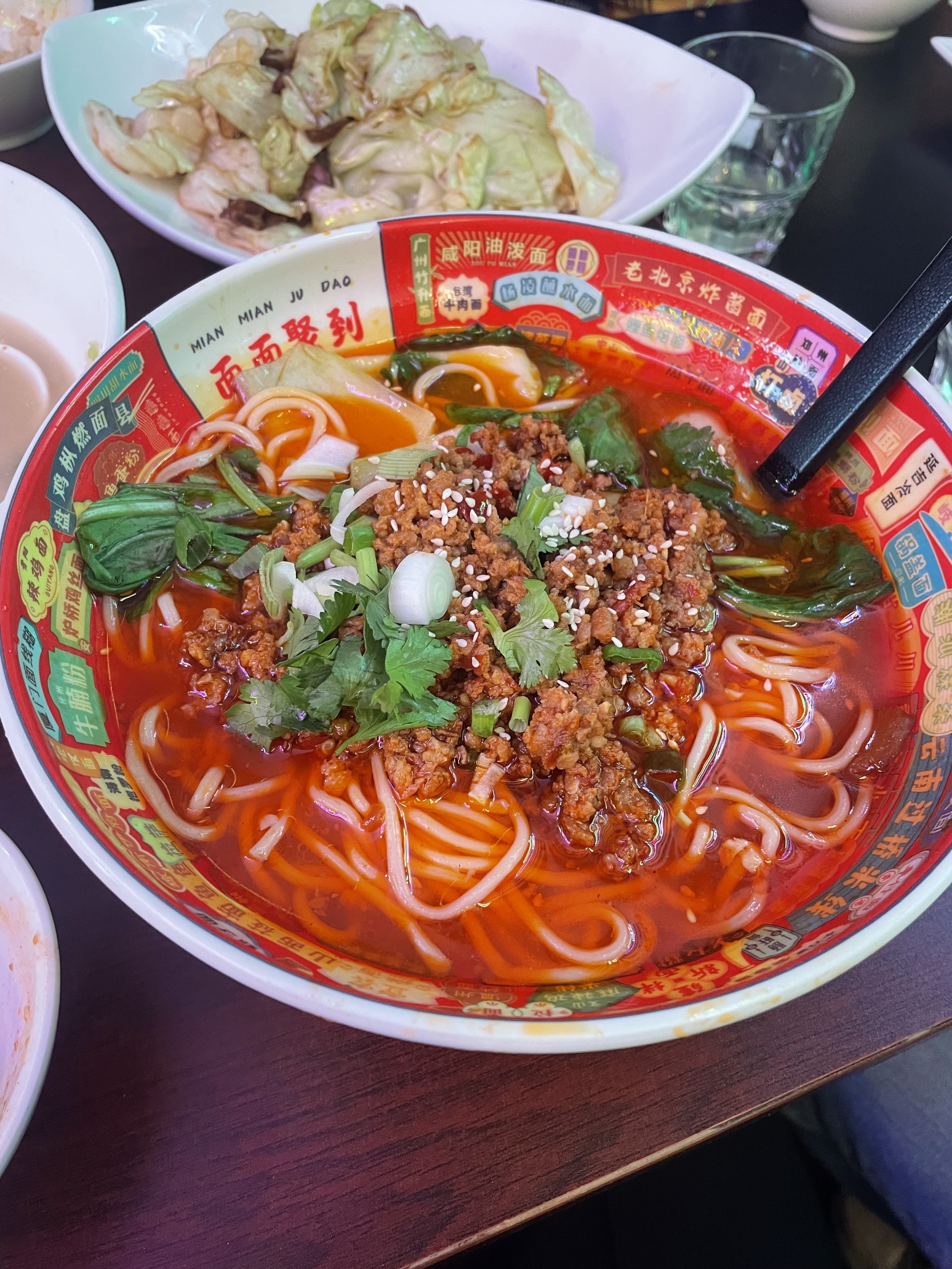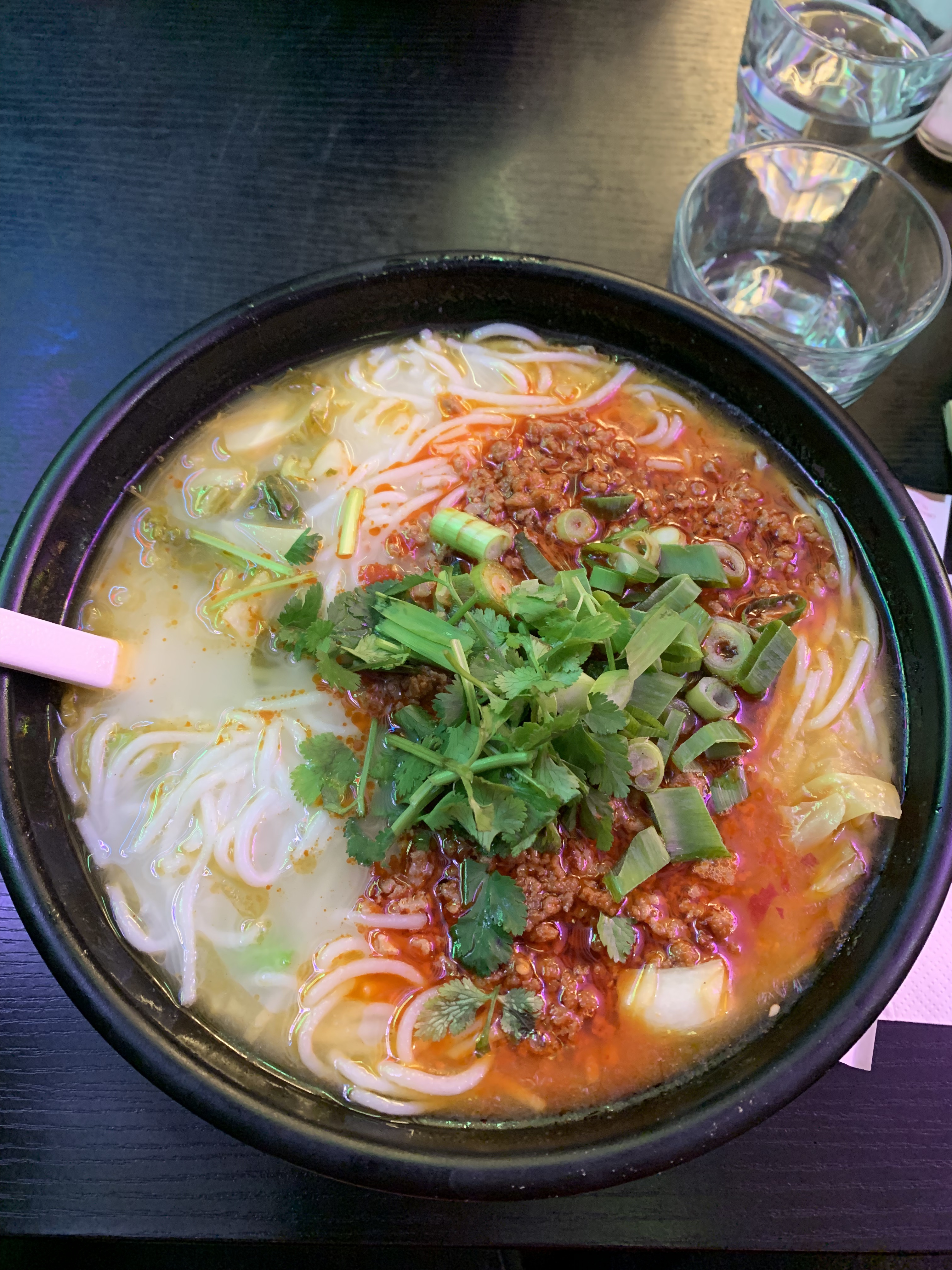 J'ai vraiment apprécié les nouilles, le prix raisonnable et les grosses portions. Les wontons étaient plutôt bons. Le mapo tofu n'est pas mal, je vous conseille de le commander avec un bol de riz. Le plat d’agneau était vraiment très salé, je ne sais pas si c’est comme ça qu’il faut le manger ou si nous ne sommes tout simplement pas habitués à la saveur. Un peu déçu que nous ayons commandé un bol sans herbes mais ils ont quand même oublié et les ont mis dedans