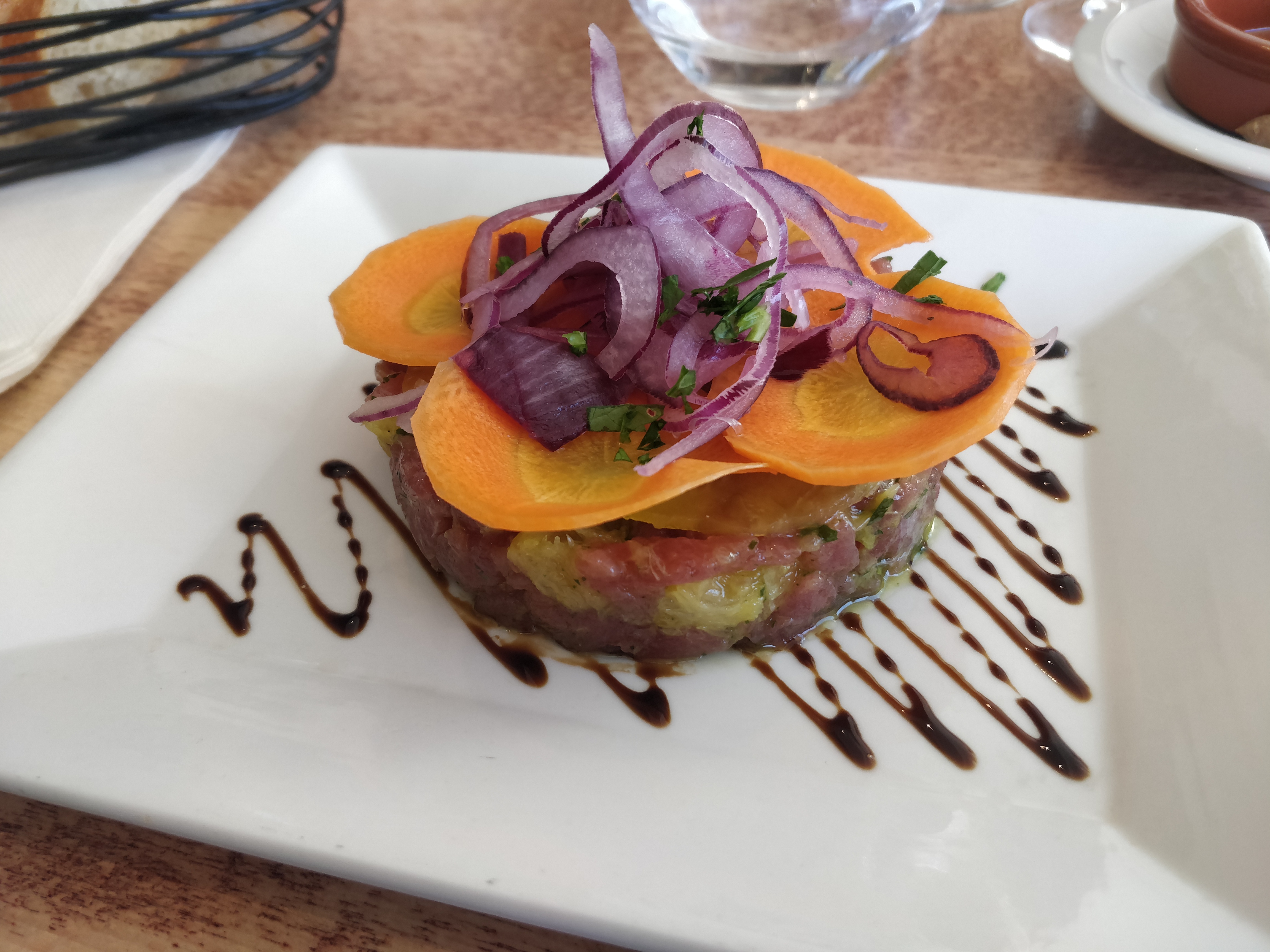 Le personnel était très agréable, le repas très bon, le prix très abordable surtout en bord de mer avec un menu à 25€ entree/plat/dessert. Une très bonne surprise que je recommande sans hésiter. La photo, c'est un carpaccio de thon avocat, un vrai délice. Et la tarte aux pommes en dessert, un régal!