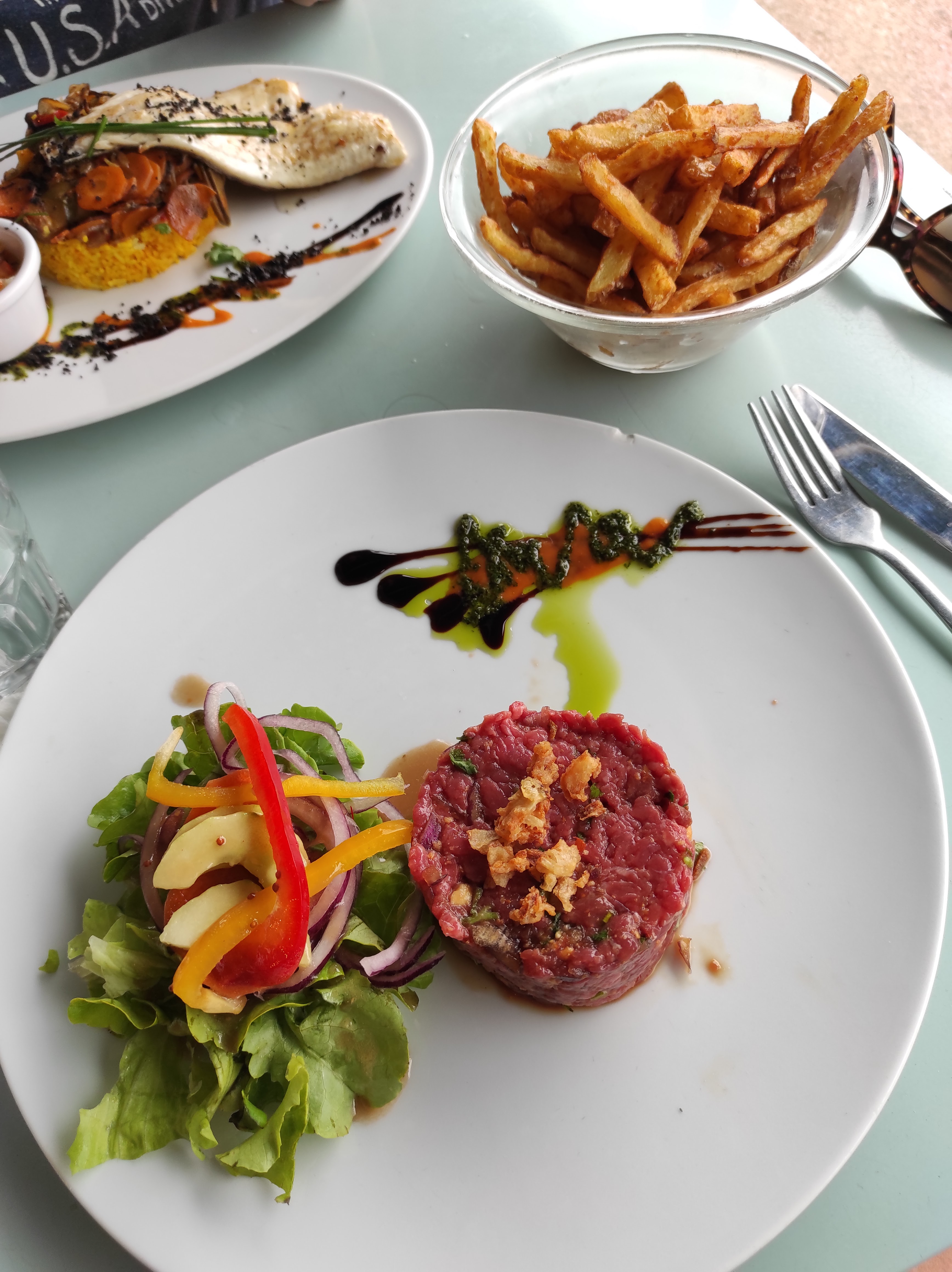 Nous sommes arrivés sans réservation. Le serveur était très chaleureux et de très bon conseil pour aider notre ado dans son choix. Situé en bord de plage la vue est directe sur mer.. Les cocktails sans alcool étaient très bons. Les plats sont copieux, et la cuisson de la viande est parfaite. La qualité de la viande est exceptionnelle tant en terme de goût, que de tendreté. Du coup nous n avons pas goûté les desserts. Je recommande, et nous reviendrons c'est certain.