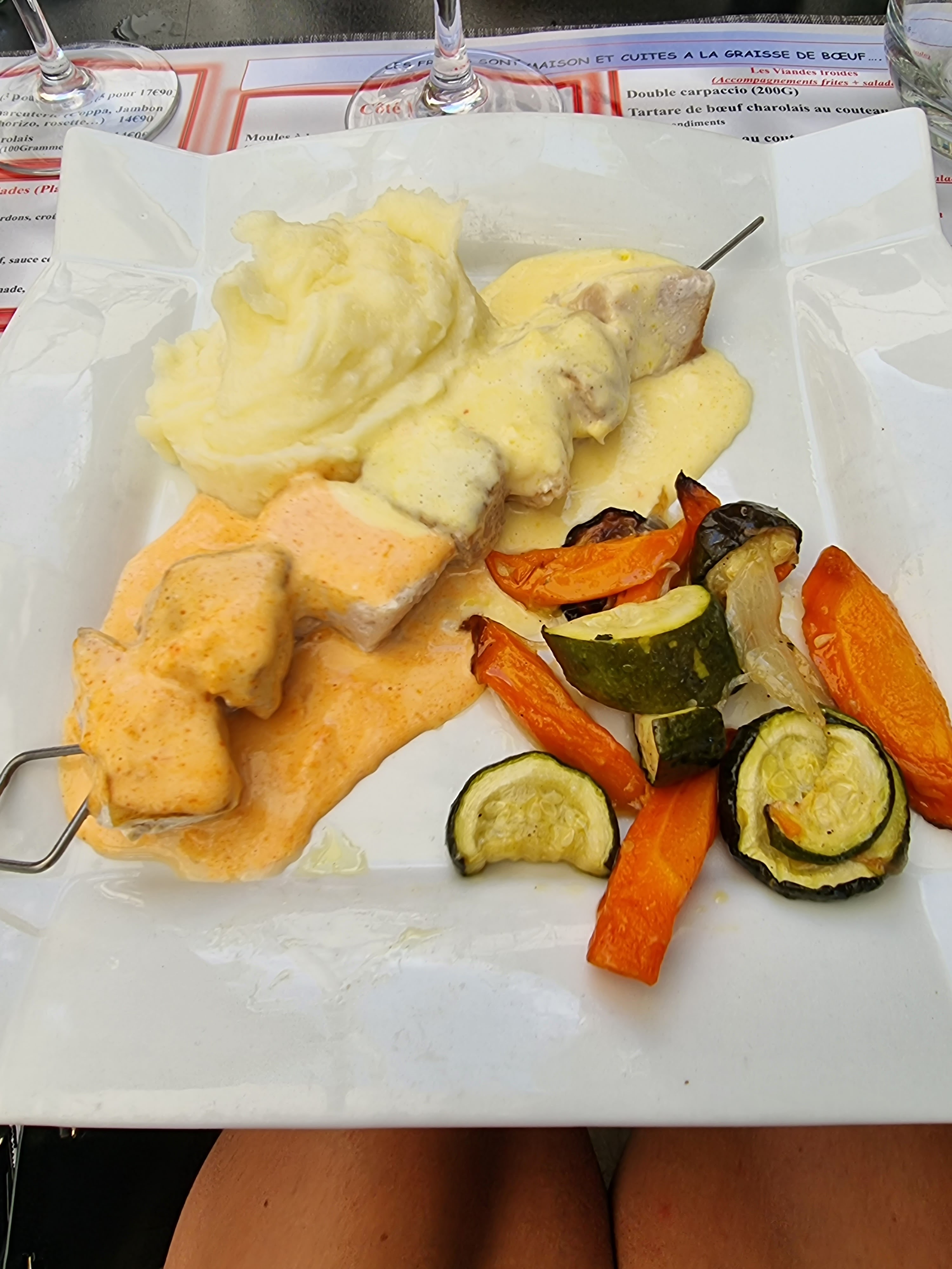 Brochettes de bœuf et pavé coriaces ,pas la bonne cuisson demandée. 2euros la sauce en supplément qui est plutôt en flotte. Mauvais rapport qualité prix .Déconseillé.