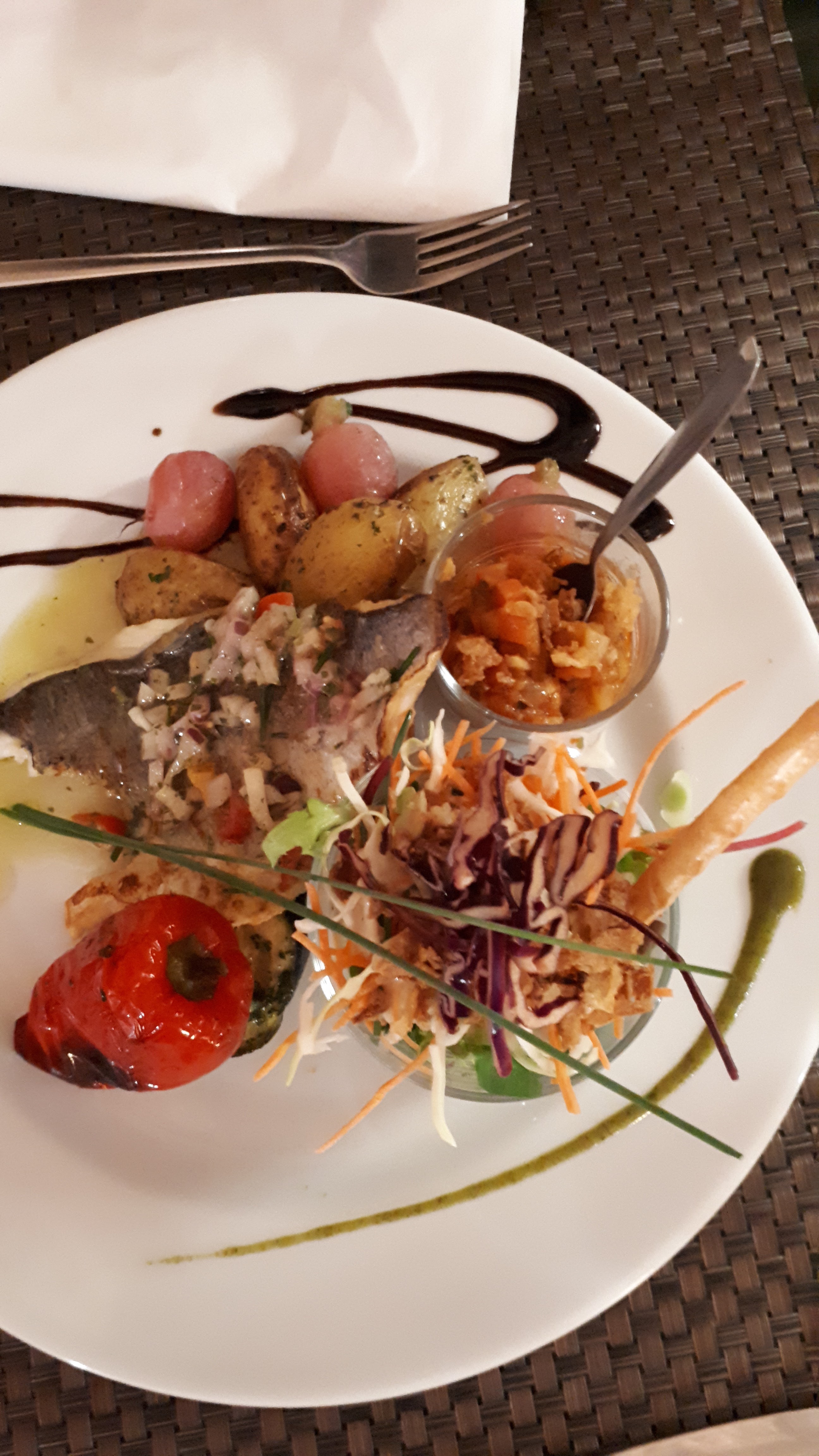 Lieu très agréable, très belle découverte. Produits de qualité, poissons cuits parfaitement, les légumes en accompagnement mériteraient d'être sublimés par un assaisonnement. Les propriétaires sont charmants.