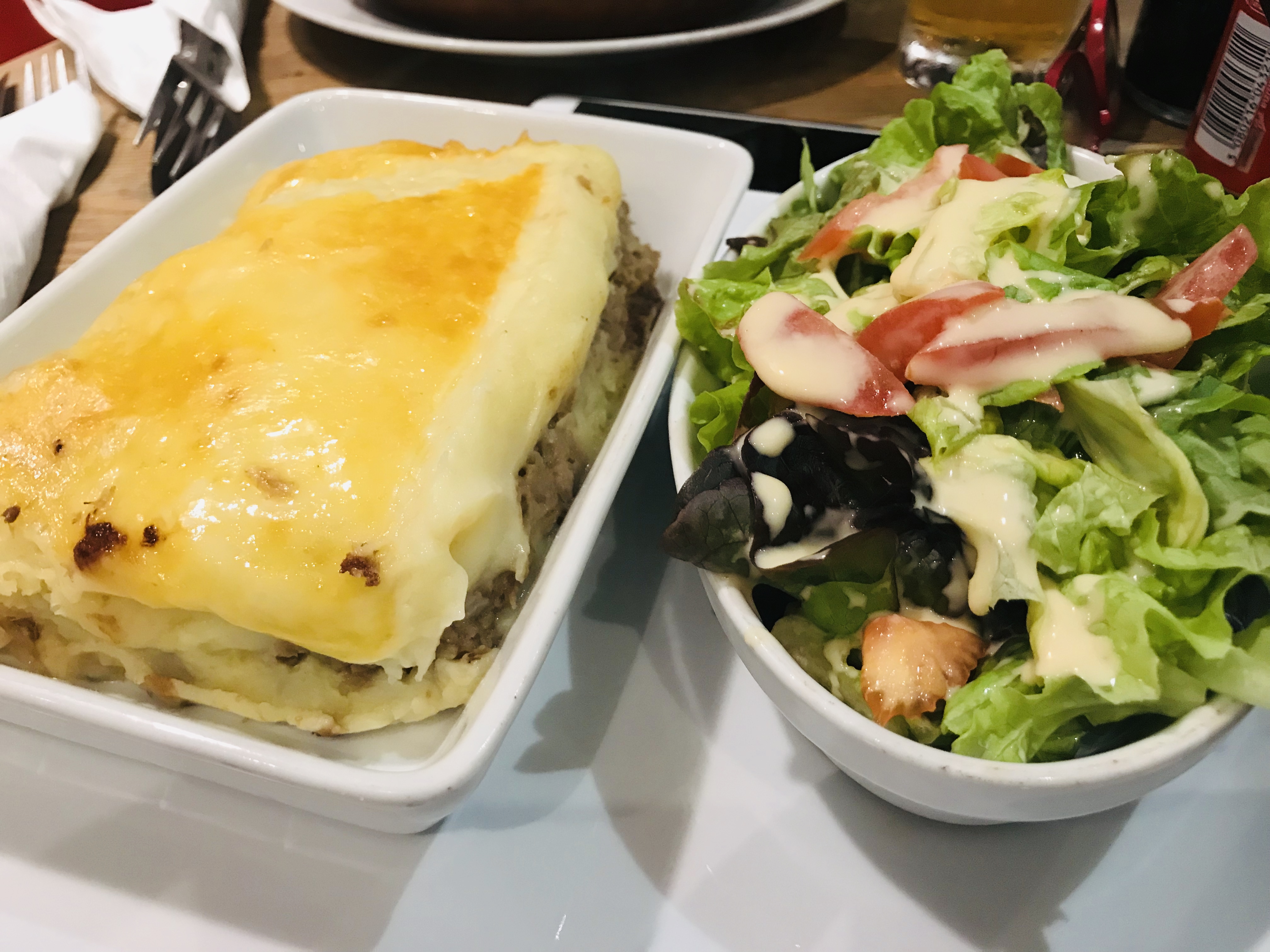 Cuisine italienne légitime à Paris. Nous avons mangé des lasagnes avec sauce tomate et viande et c'était très bon.