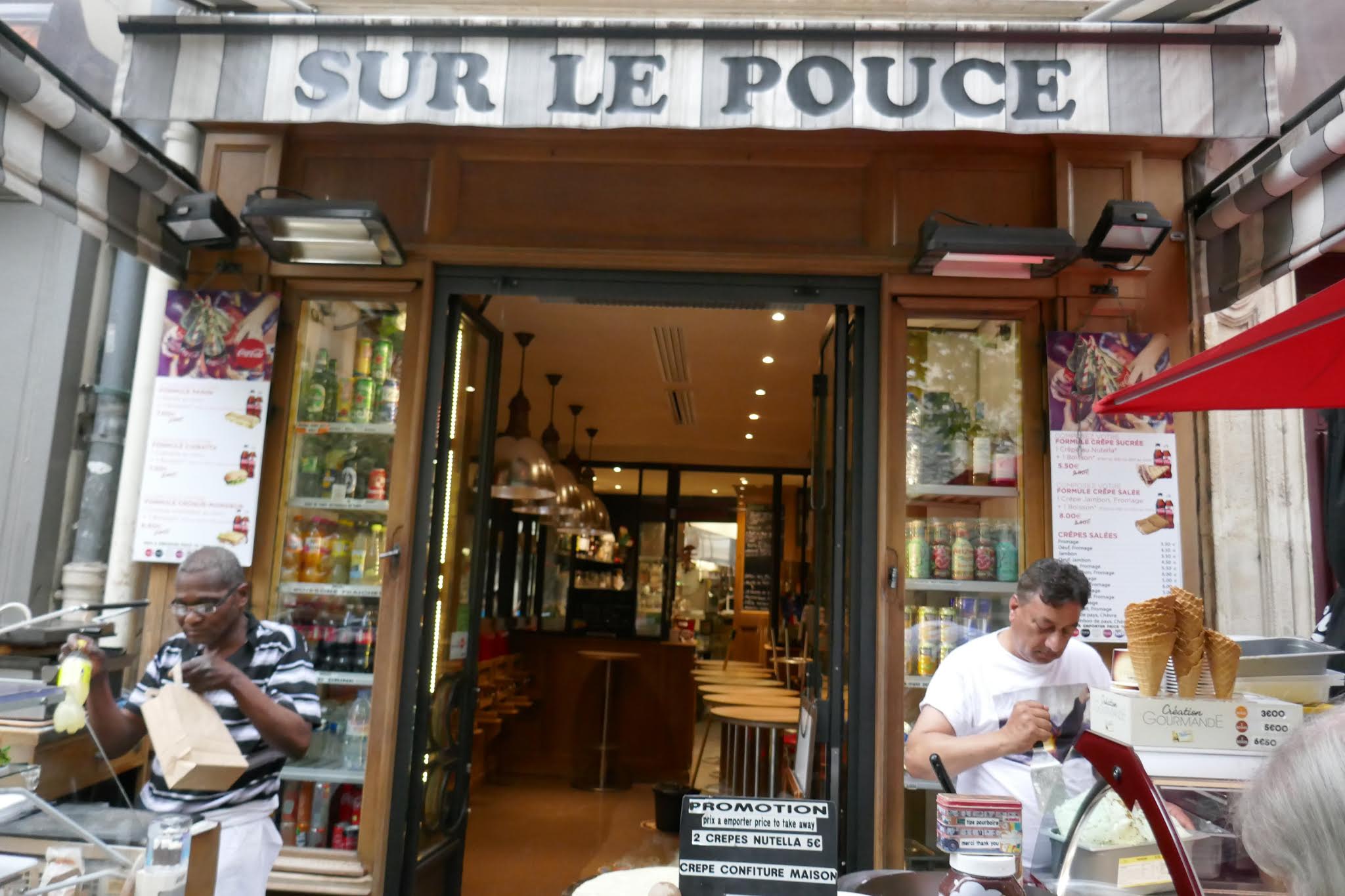 Super restaurant français. Dehors ils servent des crêpes et paninis. Je conseille les panini quand on a pas le temps, ils rajoutent une huile aux fines herbes qui est délicieuse. Sinon, rentrez à l’intérieur. C’est petit mais vous découvrirez qu’ils font aussi des plats français. Je recommande le hachis Parmentier qui est vraiment très bon. C’est possible de les emporter. Ils sont délicieux, je suis un client régulier et j’y viens minimum 1x par semaine. Le service est super. Pour le quartier, ce n’est pas trop cher, et c’est loin d’être un attrape touristes !