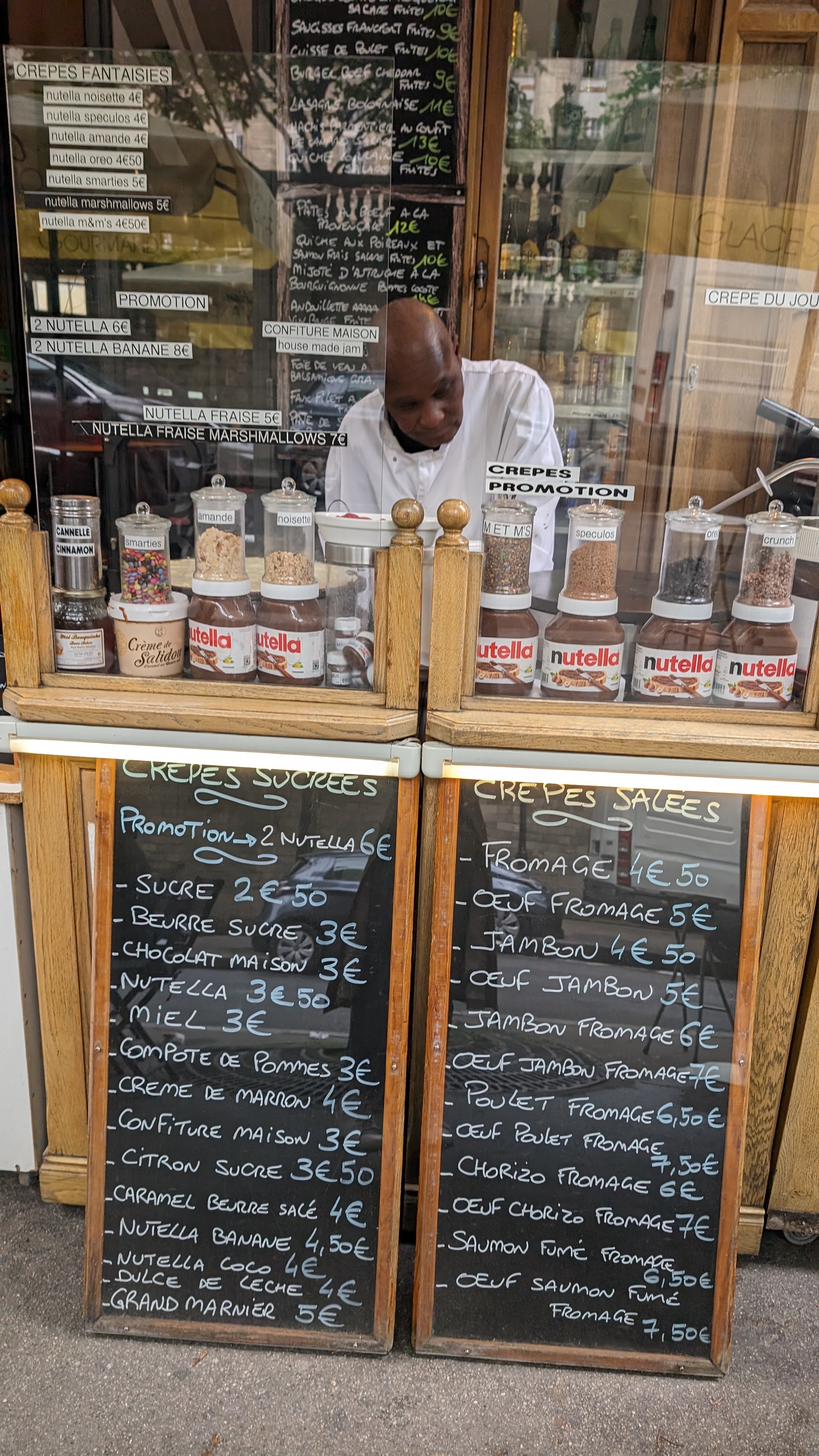 Il y avait la crêpe Nutella qui était délicieuse. Le préposé m'a aidé en anglais car j'avais du mal à transmettre ma commande en français. Ils avaient également des plats à manger ou à emporter.