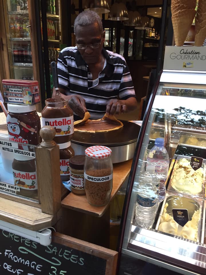 J'ai reçu une délicieuse crêpe au Nutella du kiosque extérieur, parfaitement préparée ! C'était l'un de nos premiers plats à Paris et nous n'avons pas été déçus.
