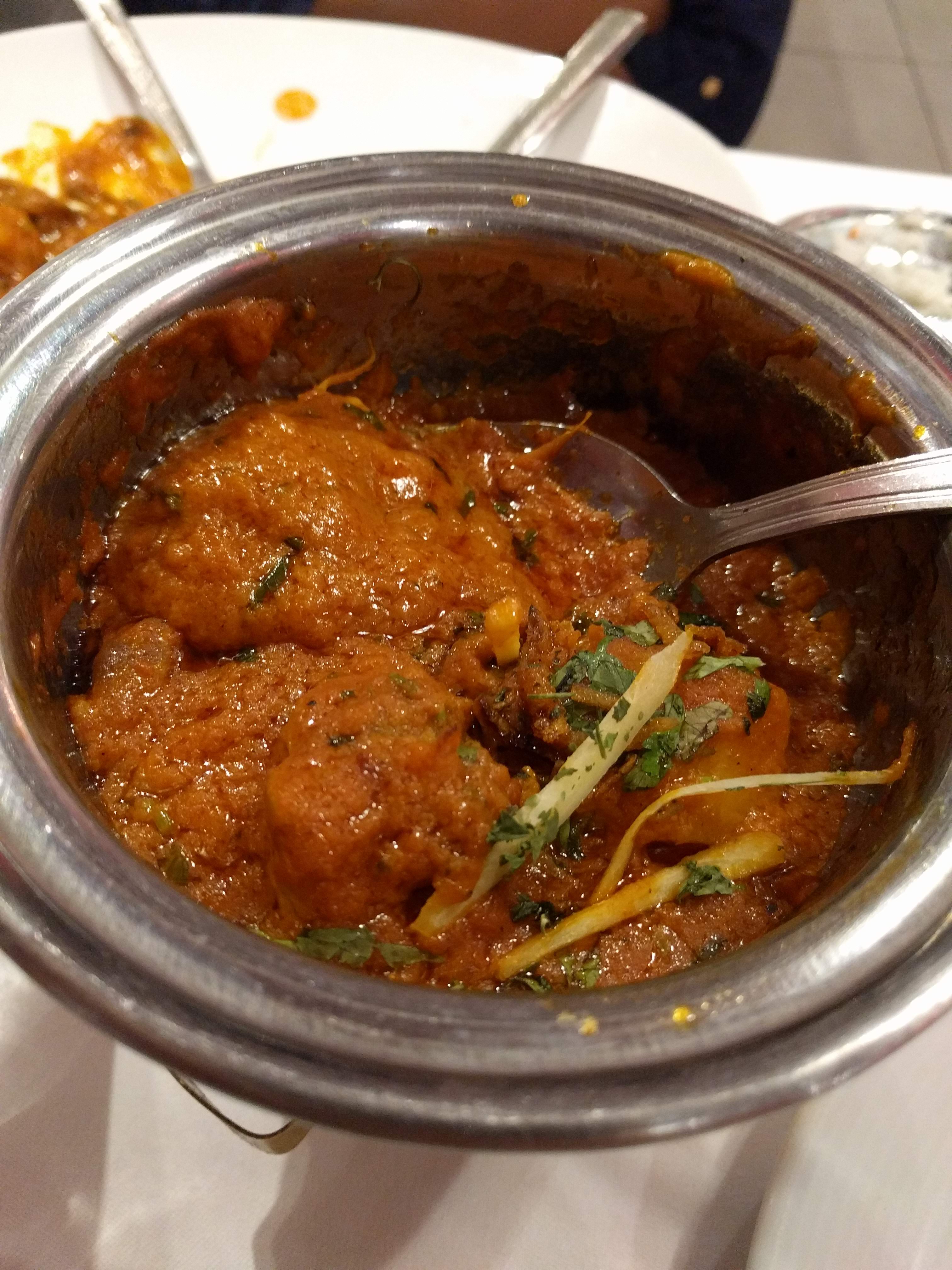 Les prix des plats ne comprennent pas le riz basmati comme c'est le cas aux autres restaurants indiens. Les plats étaient un peu froid, on dirait donc réchauffés. Pas trop de saveurs dans les plats qu'on a commandé. Le poulet était pas bien cuit, il était dur à mâcher. Nous avons commandé aussi un nan à l'ail et un nan au fromage. Le nan à l'ail était non salé + l'ail était encore cru posé sous forme de petits morceaux sur le pain :'( ! Service pas mal!