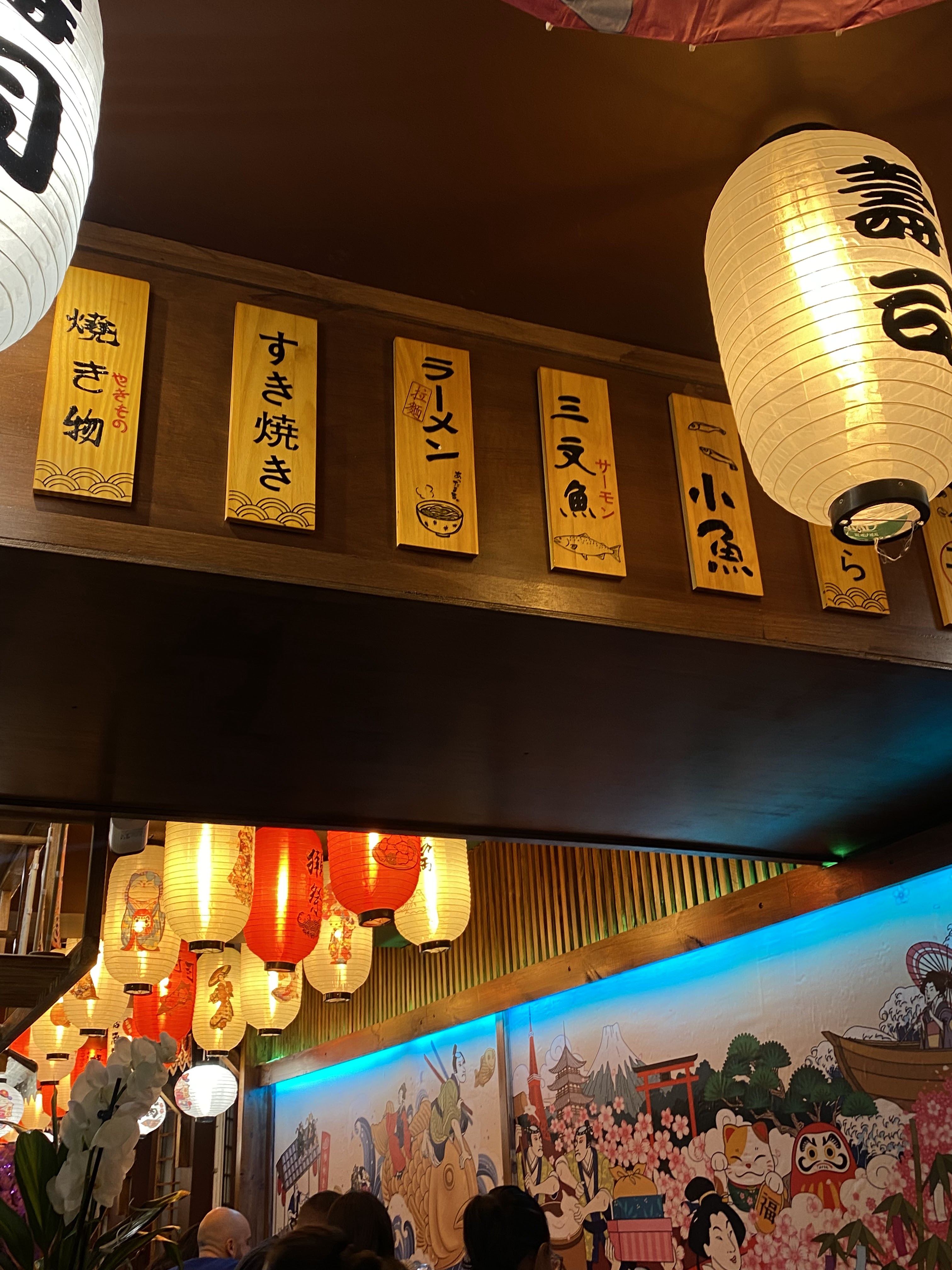 Décoration originale et ambiance immersive. Service très performant et agréable. Toutefois, les plats ont très peu d’intérêt gustatif : poulet frit trop mou & Udon insipide… Dommage!