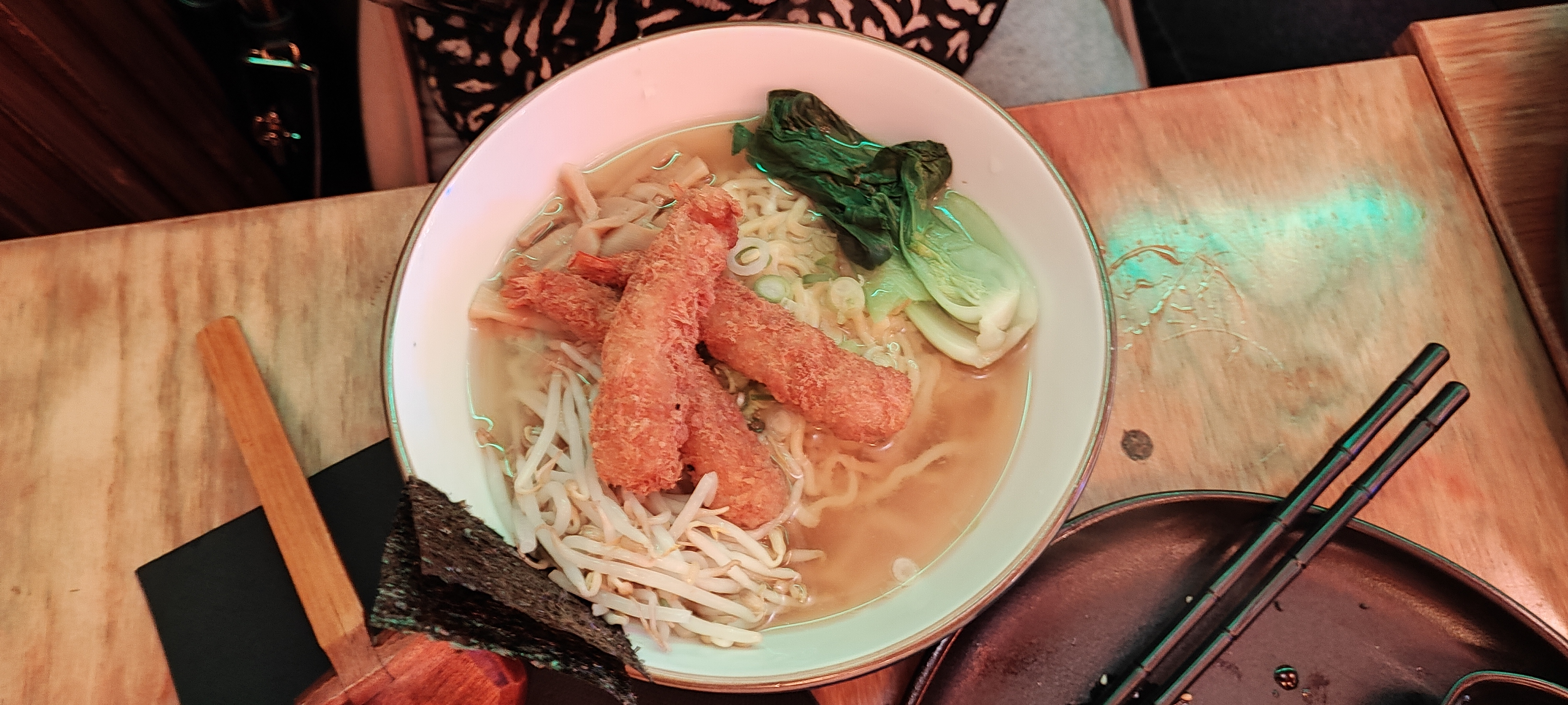 Le cadre est vraiment magnifique. Malheureusement, j’ai trouvé les ramens un peu décevant, le bouillon manquait vraiment de goût. Les tempuras étaient quand à eux assez bon tout comme le poulet. Il y a vraiment du potentiel mais les saveurs, en tout cas concernant les ramens, sont à retravailler :)