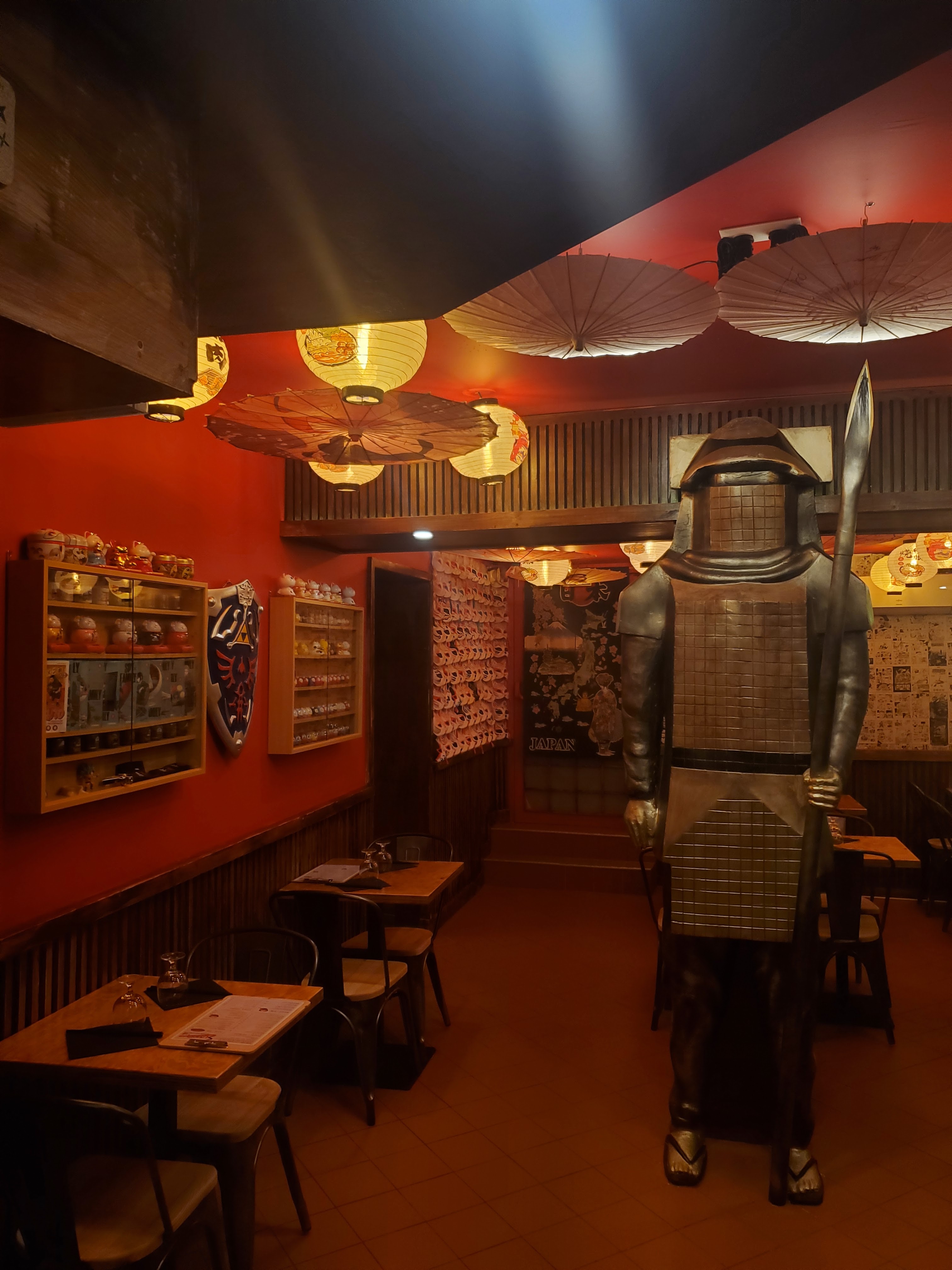 Une très belle expérience visuelle et gustative. La décoration est dépaysante agréable et spacieuse, avec de nombreux objets et meubles rappelant la culture japonaise, des tatamis, éventails, sabres ect. La cuisine quant à elle est raffinée et agréable en bouche. Les serveurs/serveuses ont été agréables et courtois un réel plaisir d’interagir avec eux. Nous reviendrons vite en famille ou entre amis
