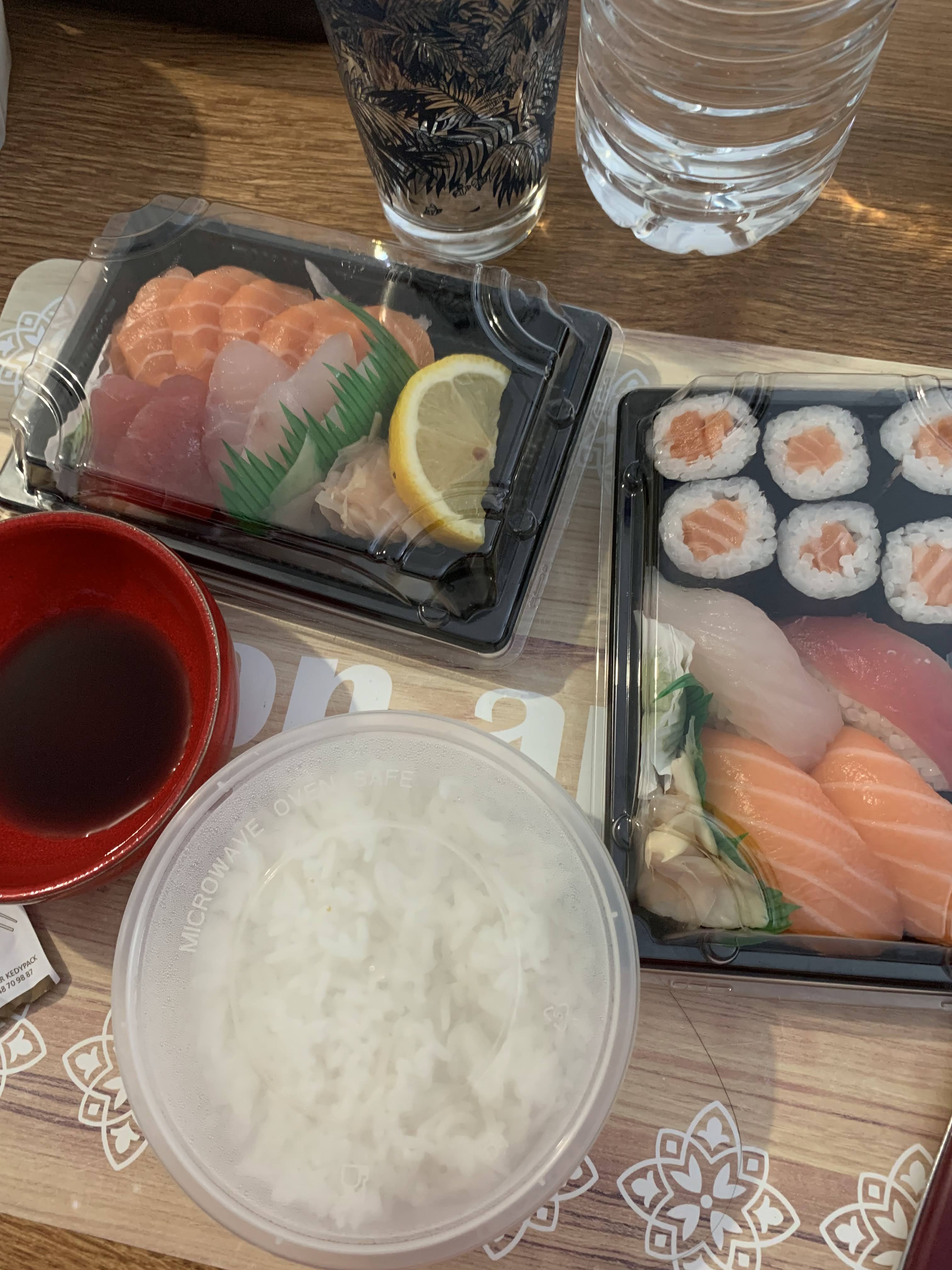 Contrairement à certains commentaires qui mettent en doute la fraîcheur des produits ou manque d'hygiène, je n'ai jamais eu de désagréments après avoir commandé. Toujours satisfaite ! Soupe miso goûteuse, brochette boeuf/fromage au top, raviolis japonnais bon et croustillant, les morceaux de sashimis saumon sont beaux et pas gras. Livraison rapide voir très vite. À quand les nouilles sautés au poulet ? 😋😋