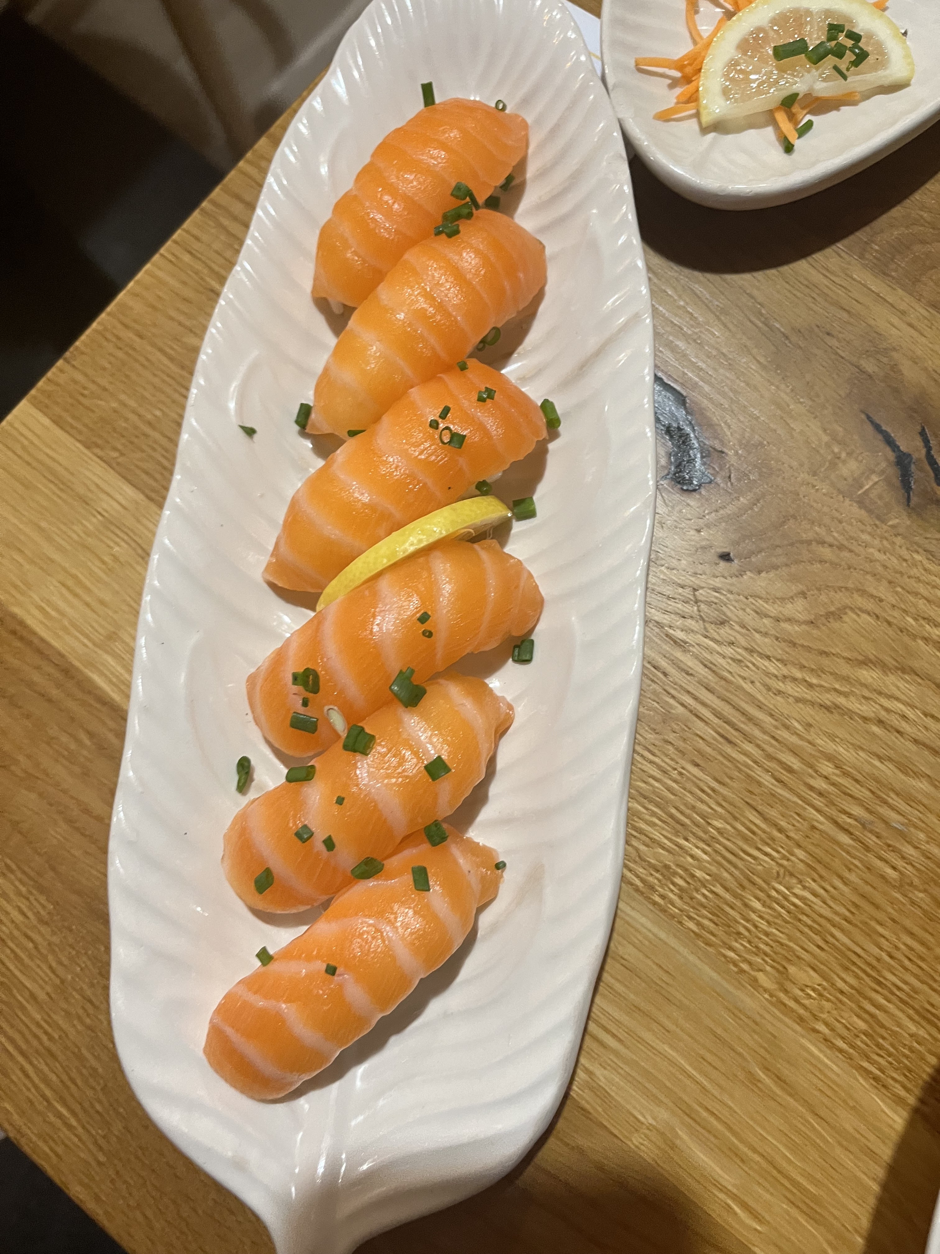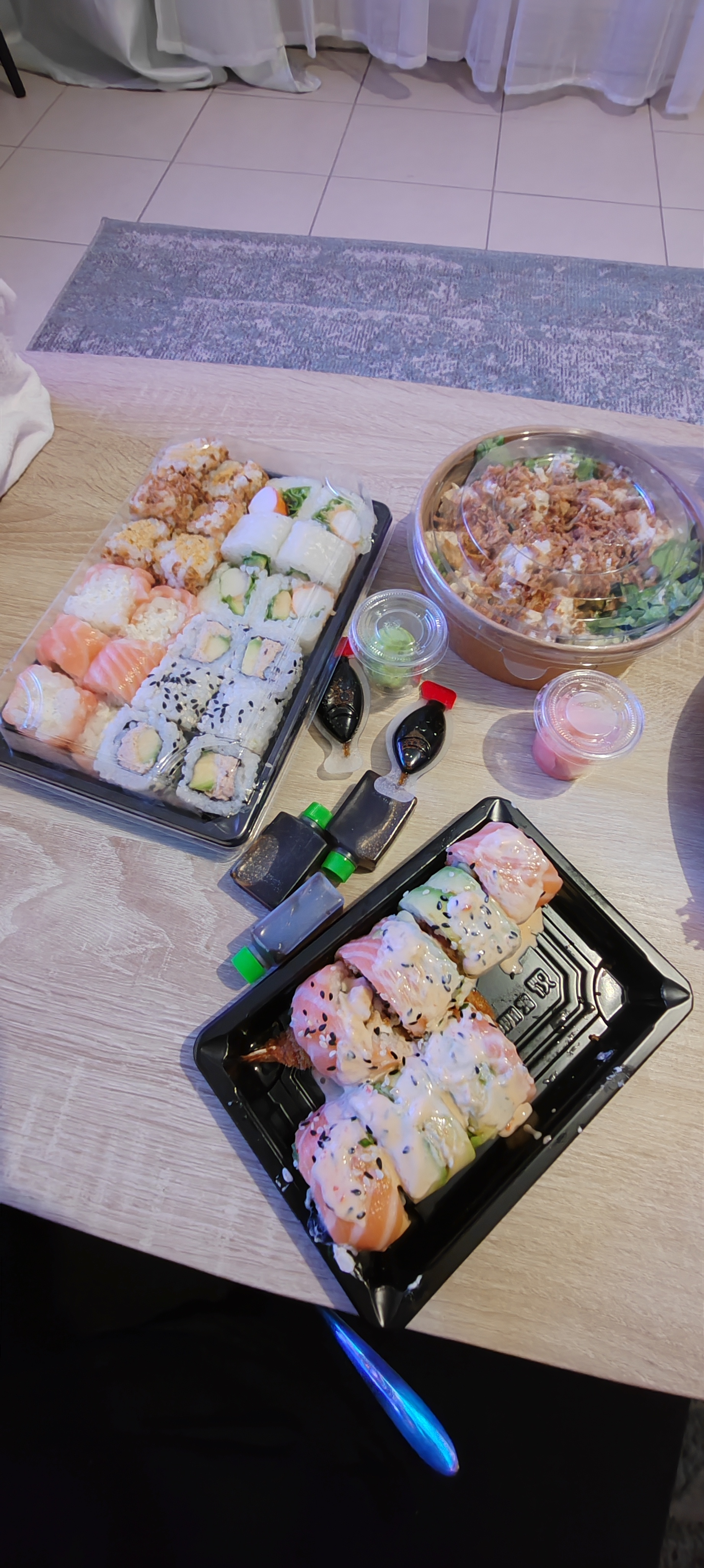 Super sushi serveuse agréable, plats (plateaux sashimi 18€ les 16 california 20€ les 24 et maki 17€ les 24) super bons salade offerte avec les plateaux trop bonne avec les oignons frits, 👍🏼👍🏼