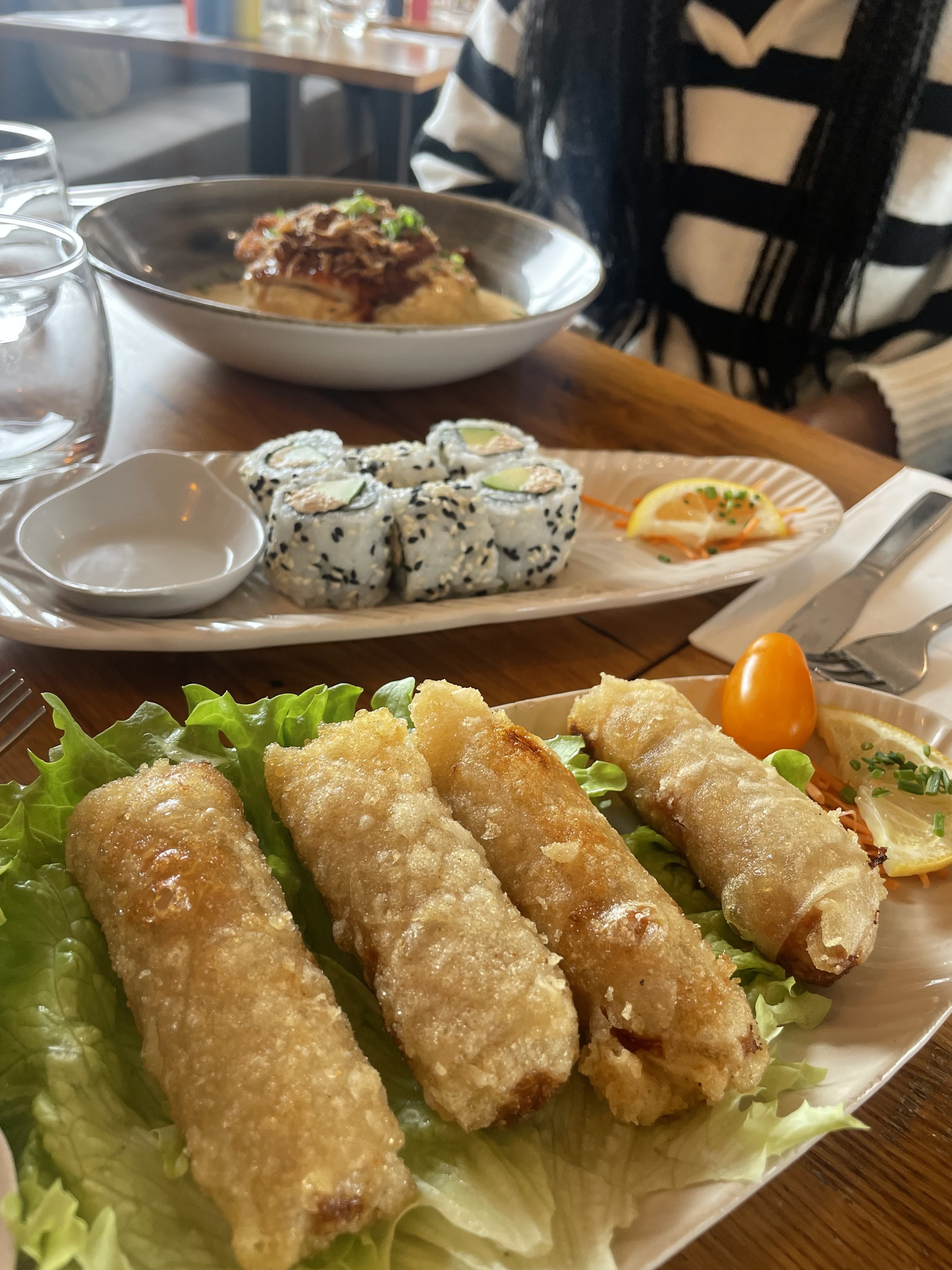 Une amie m’a amené dans ce petit restaurant à la décoration très jolie et j’ai eu une agréable surprise. Les portions étaient généreuses et les plats goûteux. J’avais pris des makis saumon fromage et une salade de nems avocat. La sauce de la salade 🥗 très bonne. J’y reviendrai c’est sur ☝🏻