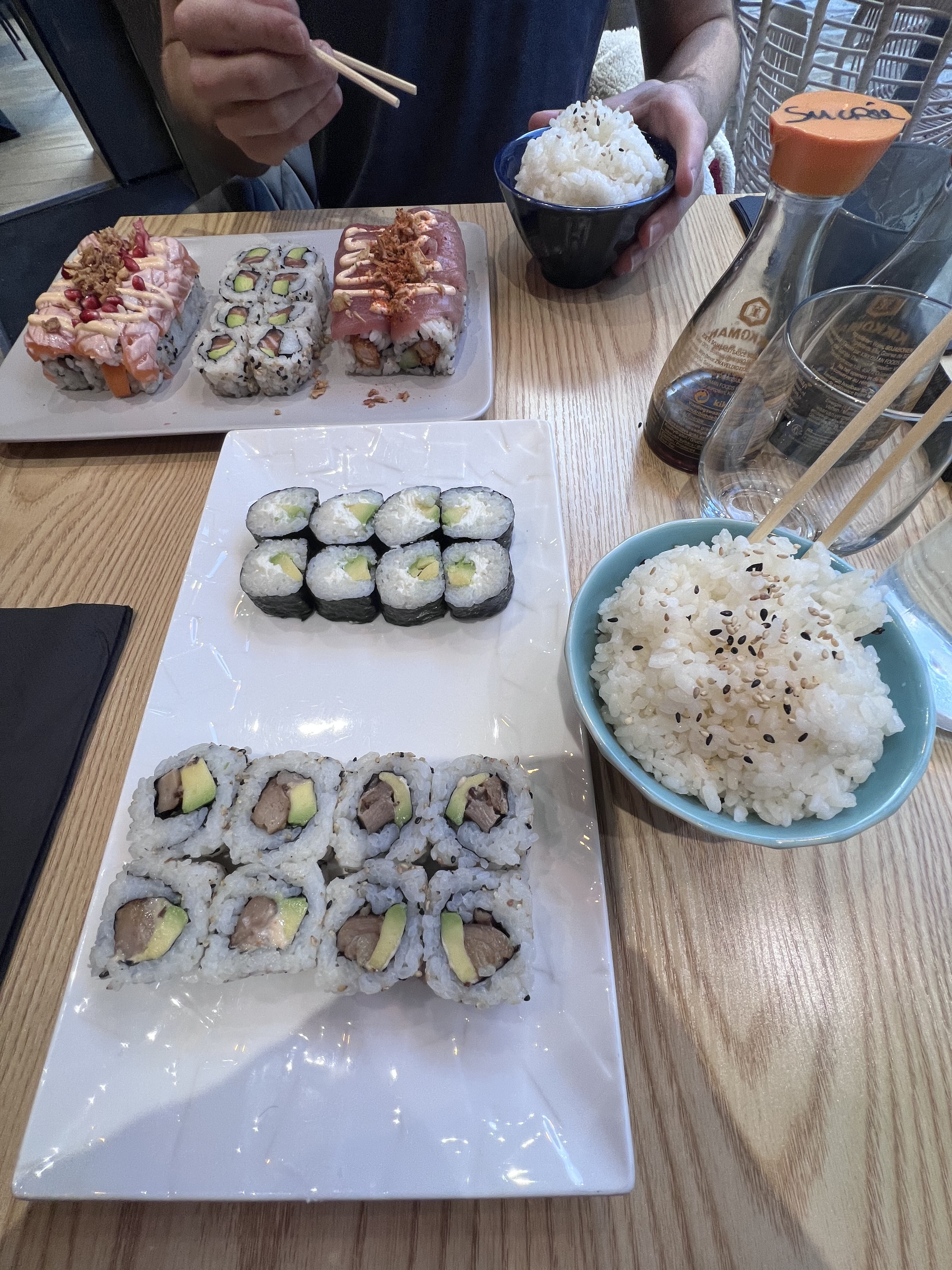 Une première pour nous en famille. Nous avons trouvé notre bonheur sur la liste de la carte. Les enfants également. Rien ne manquait tout y était. Le personnel souriants. Sympa de voir les cuistos préparer à la commande les plats et nous n'avons même pas attendu c'était rapide! Un endroit convivial et calme nous avons adoré. Côté prix cela reste des sushis donc un tarif plus élevé qu'un mac do mais reste correct tout de même. A refaire