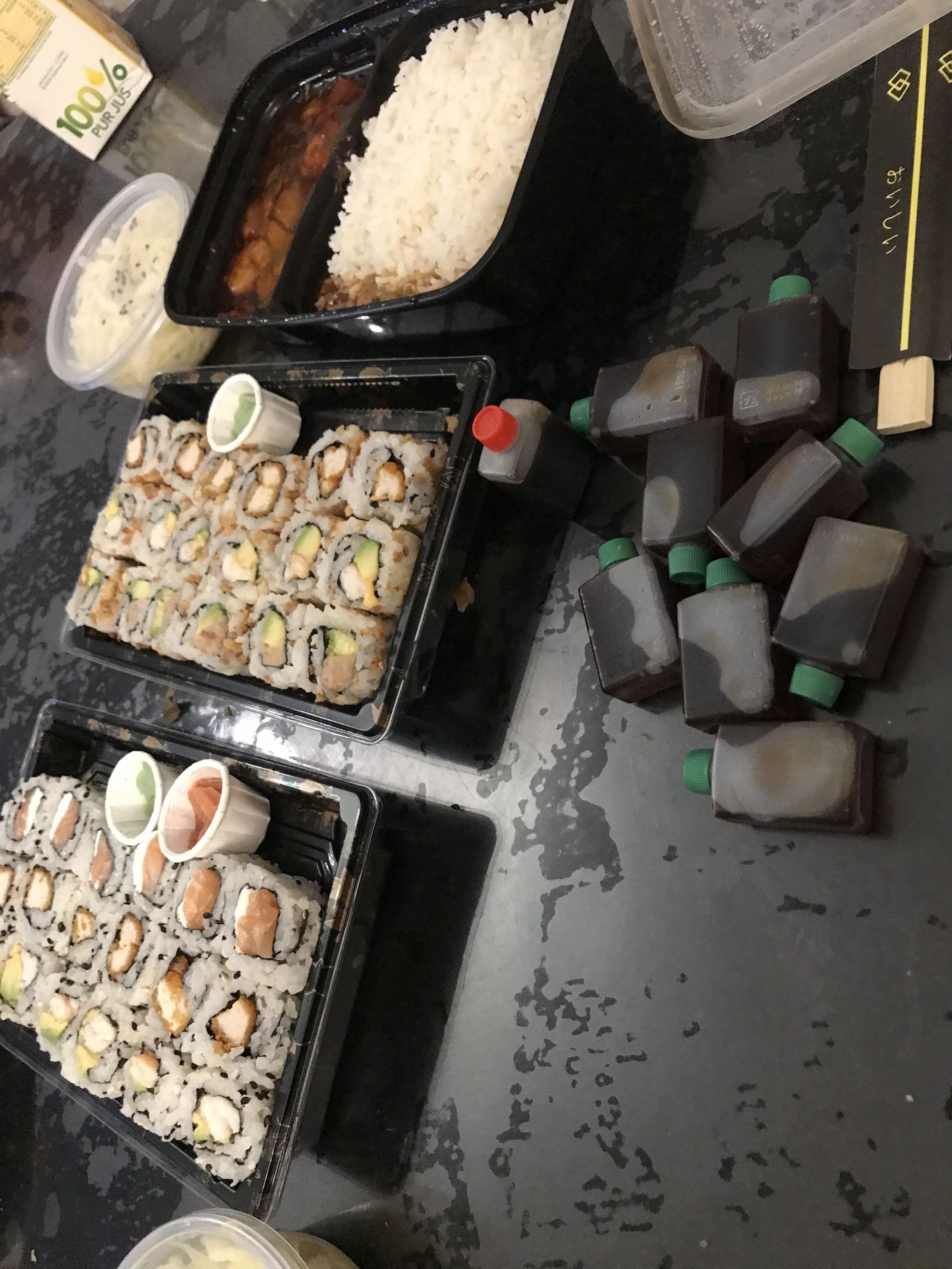Livraison rapide, livreur aimable. Californias thon cuit et poulet mayo très bons. Par contre les brochettes étaient immondes. Le riz reçu à la place de la salade de crudités était tellement mauvais que même mon chien n'a pas pas voulu le manger...... Je ne renouvellerai pas l'expérience malheureusement. Dommage.