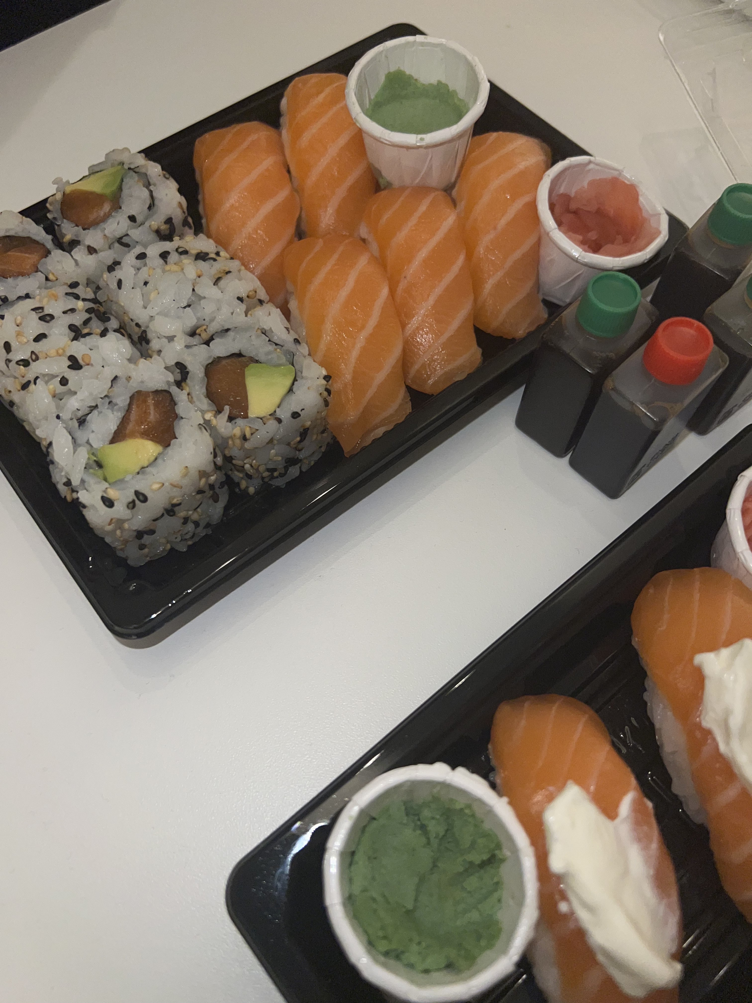 Commande en livraison, as mis environ 30 minutes, j’ai commander un assortiments de california une partie crispy et l’autre non, niveau goût c’est correct niveau produit frais j’ai vu mieux, pour les crispy je trouve qu’il y en a pas assez sur les california, ceux au poulet sont trop sec pas aimer, les meilleurs sont avec saumon cheesecake, j’ai pris aussi des crevettes pimenté mais quel dommage de mettre des petites crevettes !! Le gingembre n’as pas l’air super frais!! Mais généreux en sauce surtout la sucrée, Je dirais moyen plus...