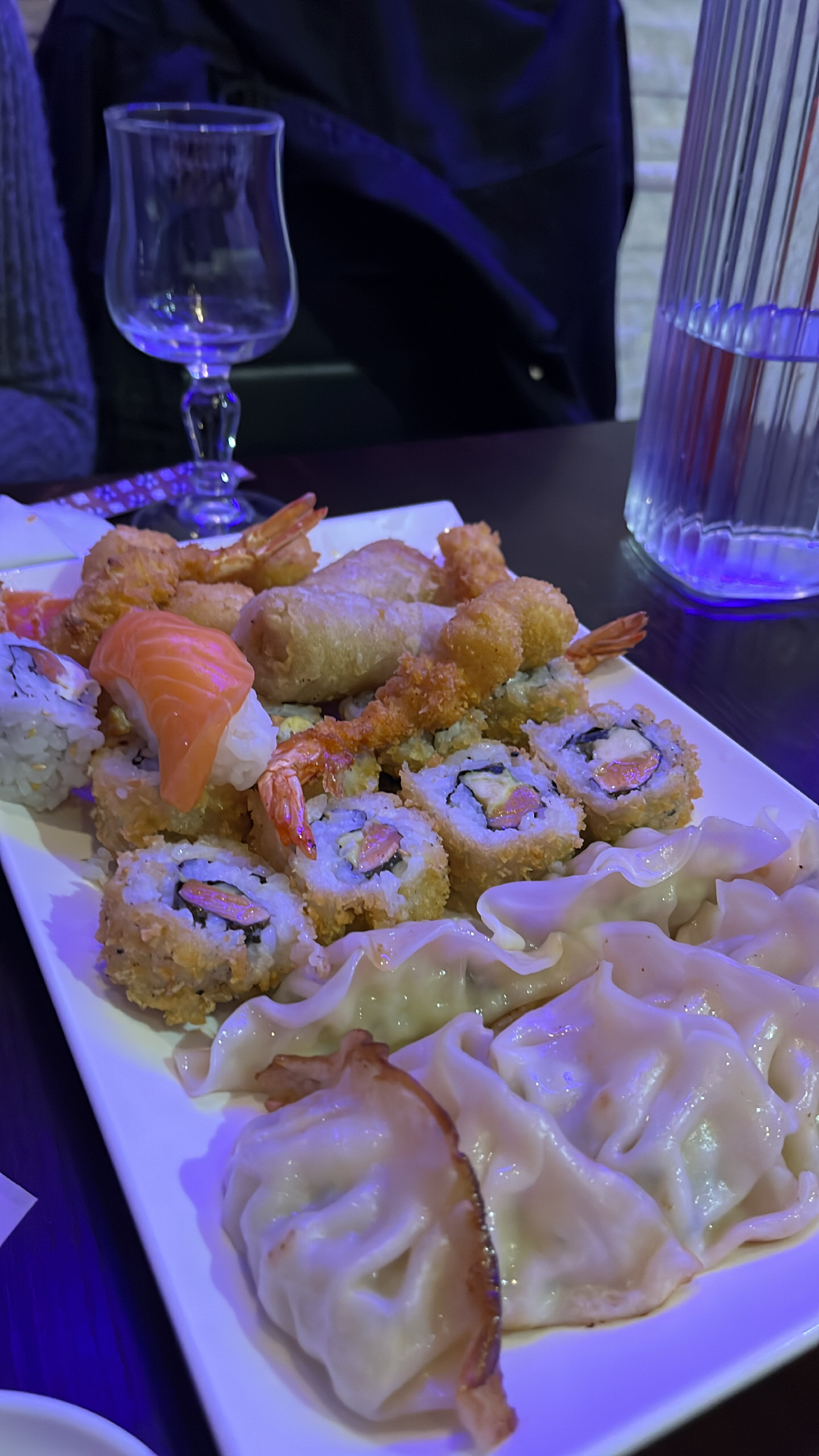 Restaurant à volonté, le soir est moins chère que les autres que je connais. Beaucoup de choix sur la carte.👍 J'ai bien aimé les rolls même si il y avait pas mal de riz. Les serveurs qui sont très sympatiques et efficaces. On nous a servi assez rapidement. En revanche, j'ai moins aimé les raviolis japonais au poulet car pas assez croustillant sur le dessous. Ni les boulettes de poulet et de poisson parce qu'il n'y avait pas de gout et le tartare de choux au saumon trop gras et mal coupé ( il y avait encore les traces de peau).