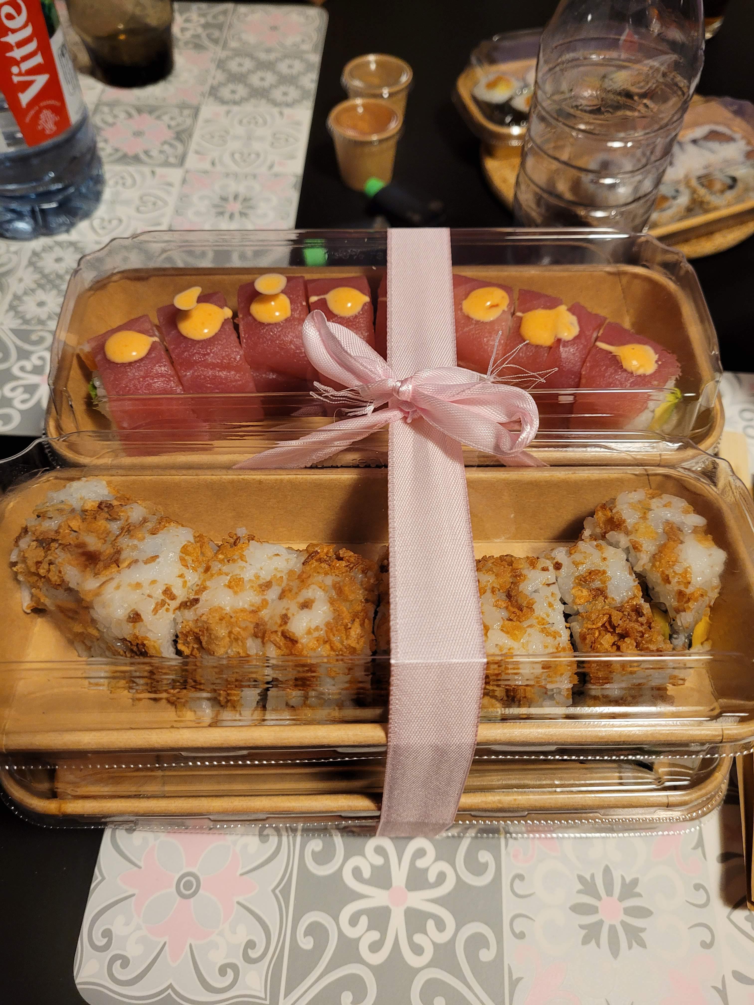 J'ai commandé en livraison via UberEats, un tataki de saumon et les salmon rolls à l'avocat. Le tataki était parfait, le poisson était fondant et mi-cuit comme j'aime ! Les sushis étaient bons mais un peu gros à manger en une seule bouchée. Salade de choux et riz japonais très bon également, je recommanderai sans hésiter !