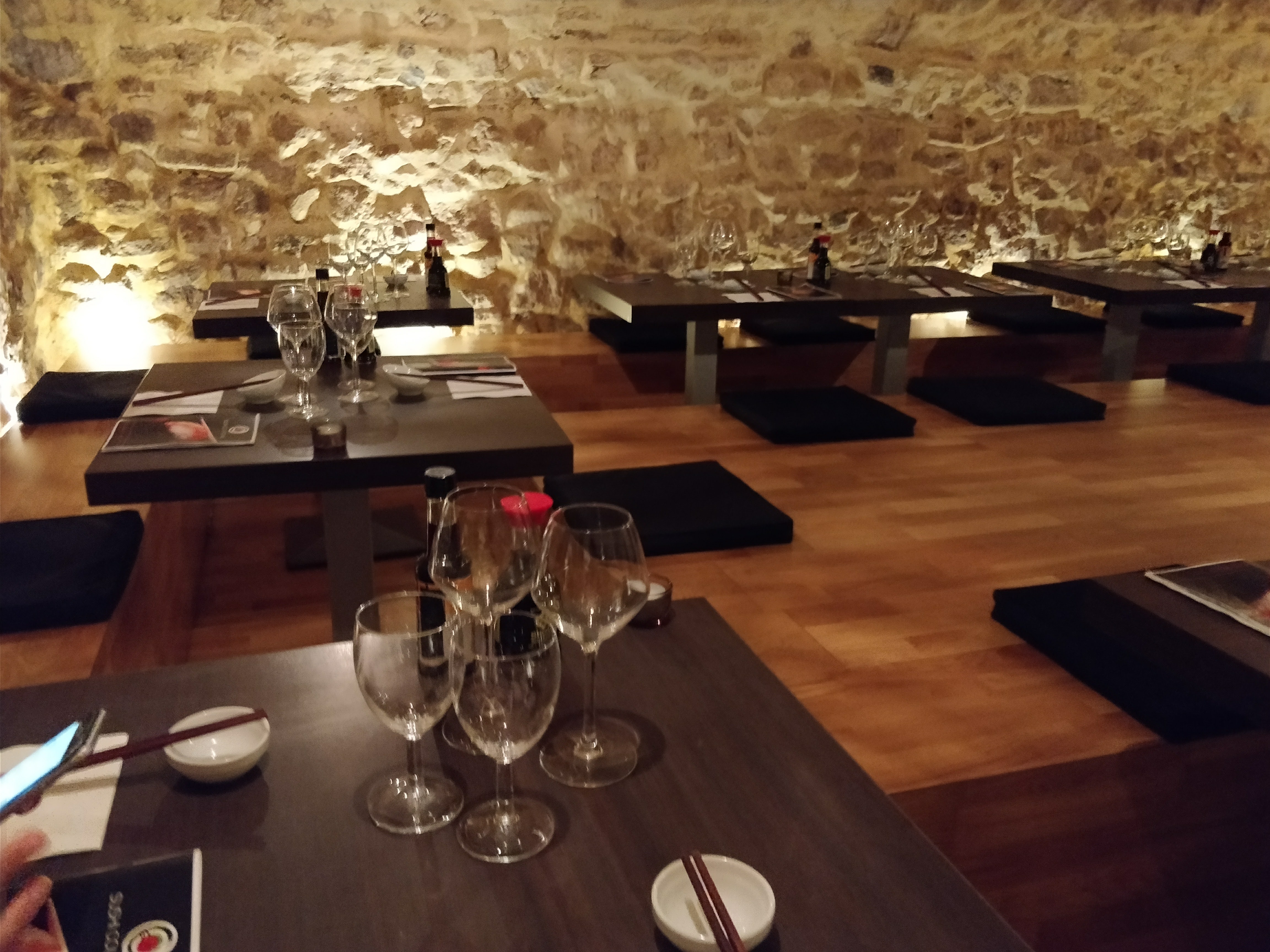 Arrêtez de réfléchir, allez y ! De passage sur Aix-en-Provence, je cherchai un restaurant pour manger avec mon frère. Magnifique experience. Tout (ou pratiquement) se fait au sous-sol dans une petite cave en pierre calcaire. Côté cadre vous mangerez au niveau du sol. Petite pensée pour le serveur qui doit s'agenouiller à chaque fois. En parlant du service, parfait. Calme, posé, chuchote presque parfois et prend votre commande en vous conseillant différents produits. Côté ambiance, encore une fois calquée sur le cadre, calme, musique zen japonaise en fond. Côté cuisine, le sushiman nous ravis de ses mets tous meilleurs les uns que les autres. Pour les tarifs ils correspondent à la moyenne, ni plus ni moins. Astuce : venez manger dès l'ouverture pour profiter de ce calme qui peut peut-être être légèrement entaché lorsque la salle est pleine.