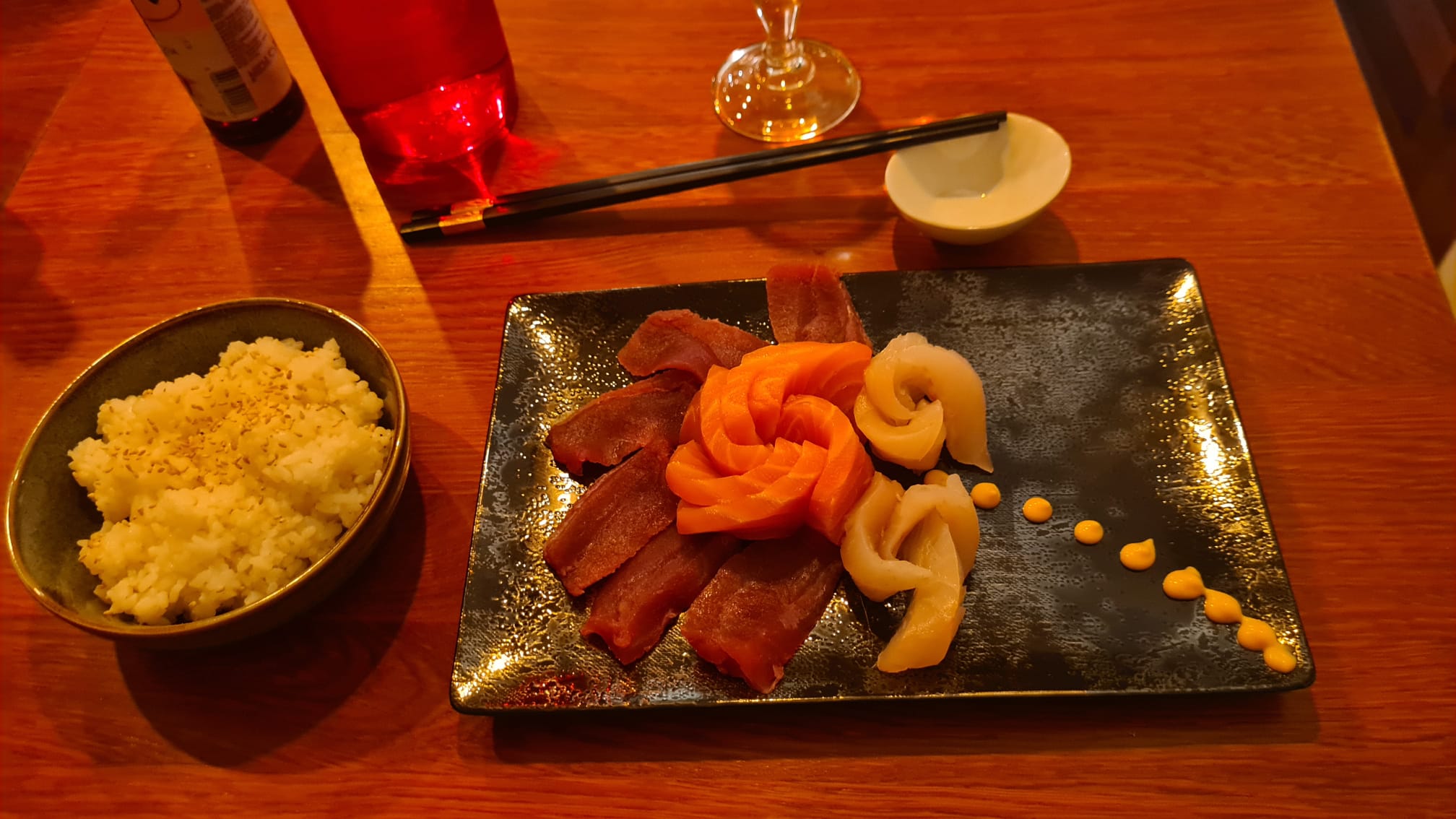 Je n'avais jamais mangé de mauvais sashimi comme celui-ci... les trucs sont vraiment bons, mais la nourriture est vraiment mauvaise... ce n'est pas japonais (´;Д;`)
