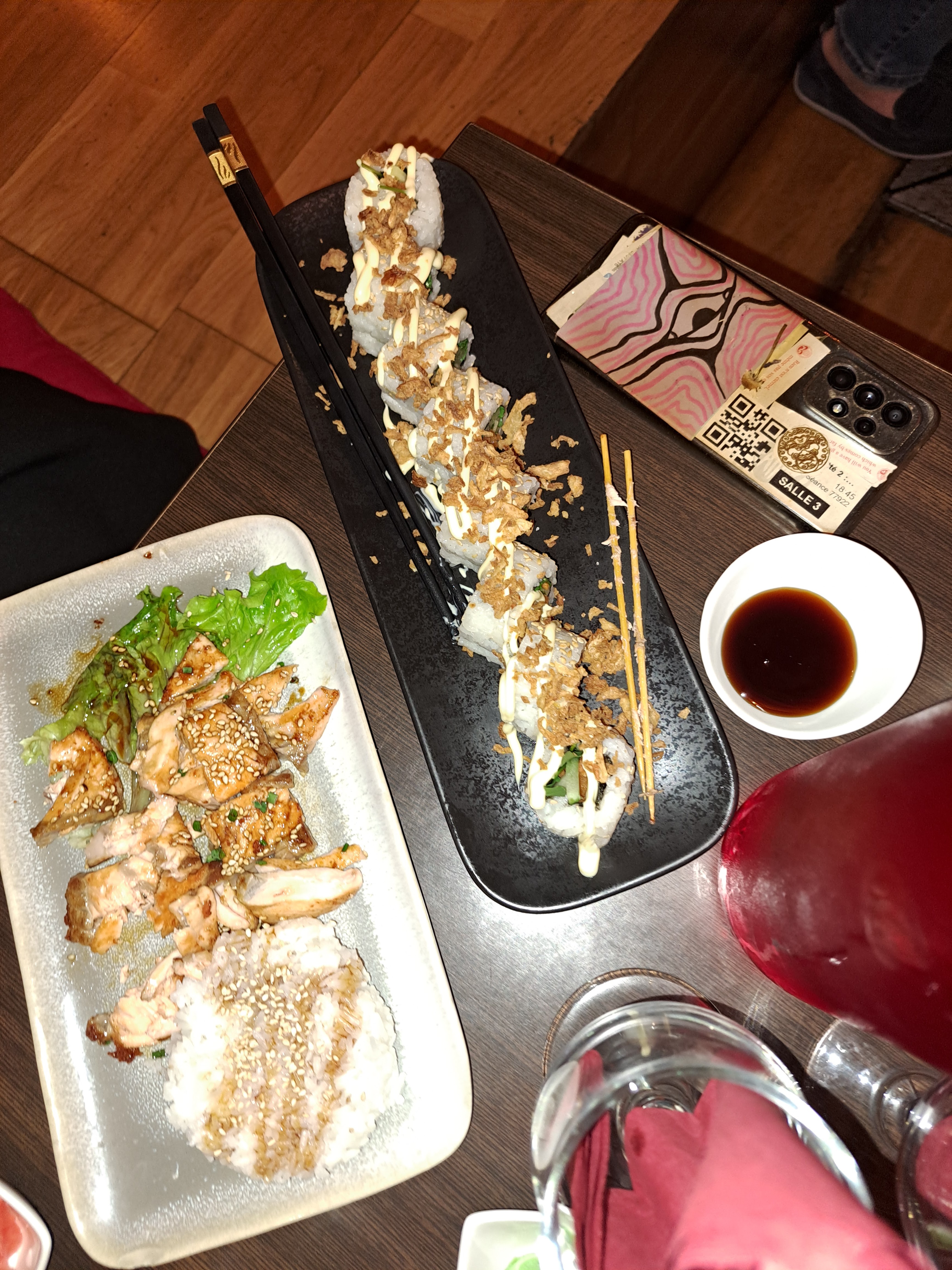 Très bonne expérience. Il y a énormément de choix sur la carte, limite trop! On ne sait plus quoi choisir Les sushis sont excellents et très copieux. Vraiment une très très bonne adresse. Il faut allez tester.