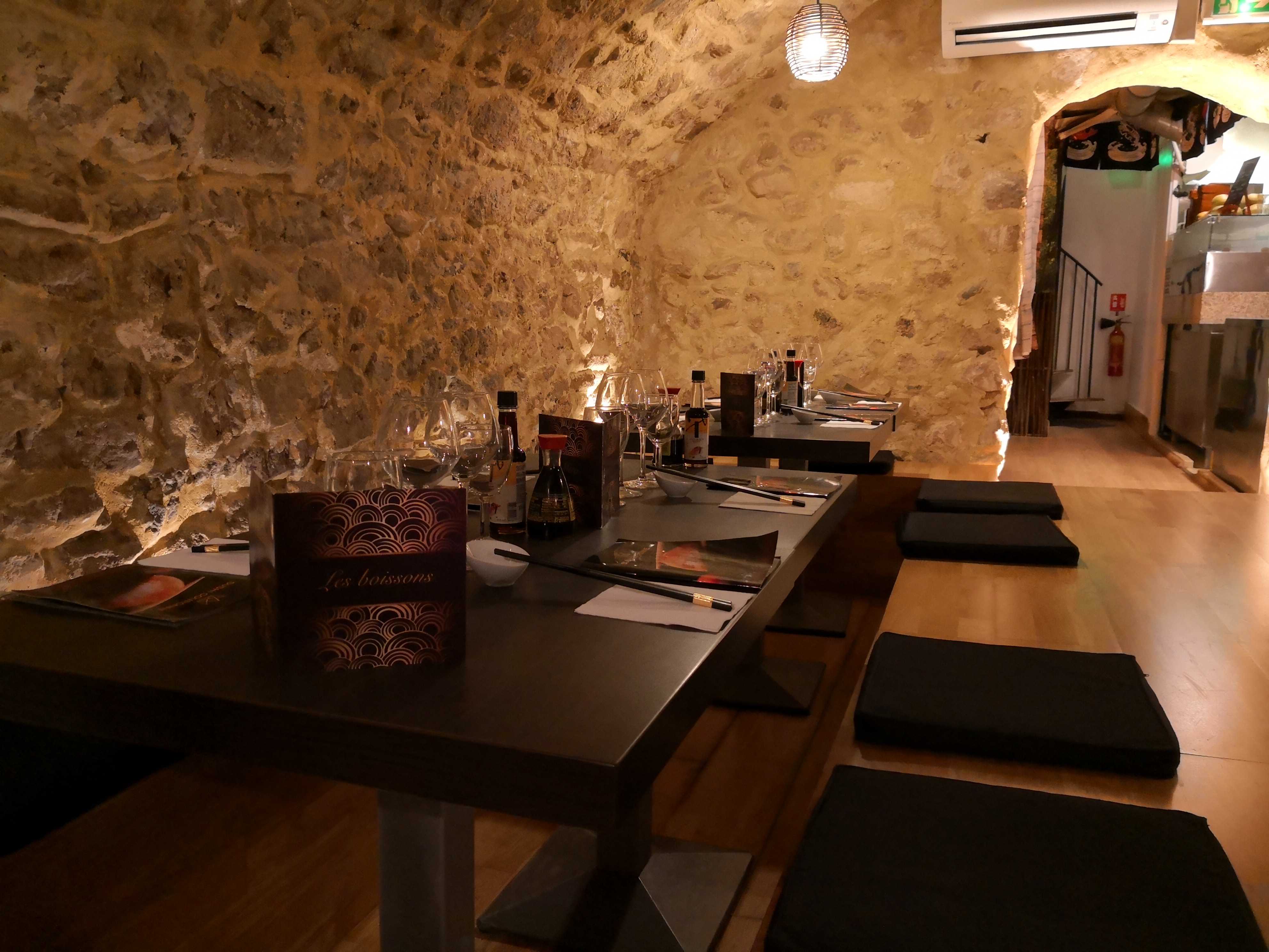 De l’extérieur le restaurant ne paye pas de mine, mais en osant vous y aventurer vous ne serez pas déçus. Au sous sol, vous trouverez une salle sobrement décorée et surtout un système de table au niveau du sol (adapté à notre souplesse occidentale pas d’inquiétude). Et alors niveau gustatif c’était juste un délice. De quoi avoir envie de prendre l’avion pour Aix rien que pour manger dans ce restaurant !