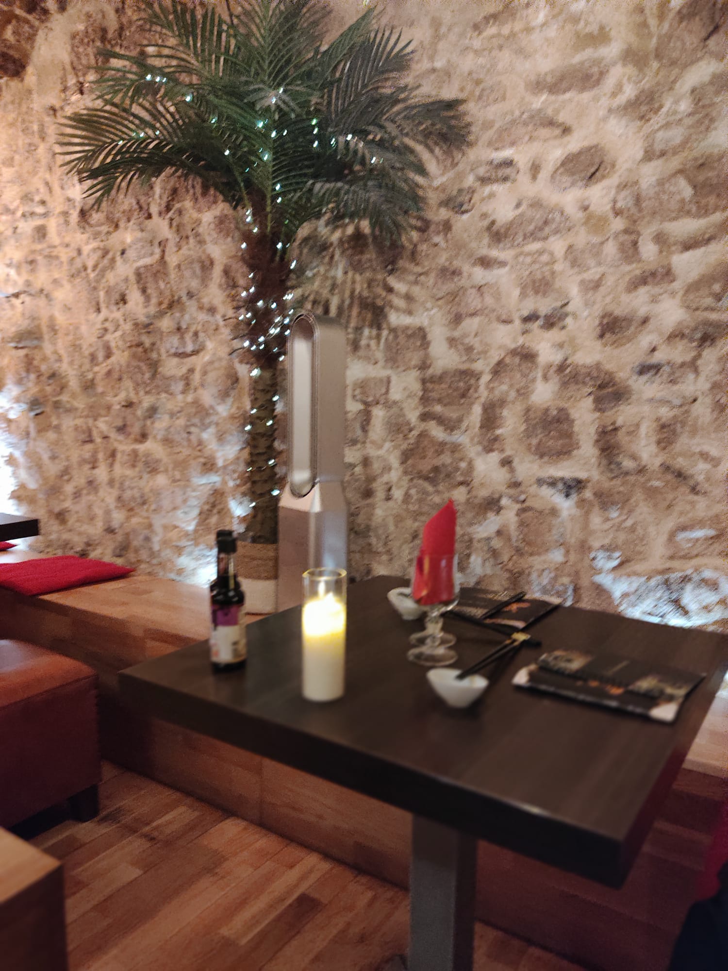Malgré le fait que nous n’avions pas réservé, le serveur a réussi à nous trouver une petite table pour une heure. Nous avons pris quatre dragons avec diverses Saveurs. C’était vraiment très bon, même si pour ma part le riz est un peu trop compact. Nous avons adoré l’ambiance dans la salle en bas. Attention cependant au plafond pour les personnes grandes comme moi (198cm). Un grand merci à l’équipe pour l’accueil et pour le service nous reviendrons.