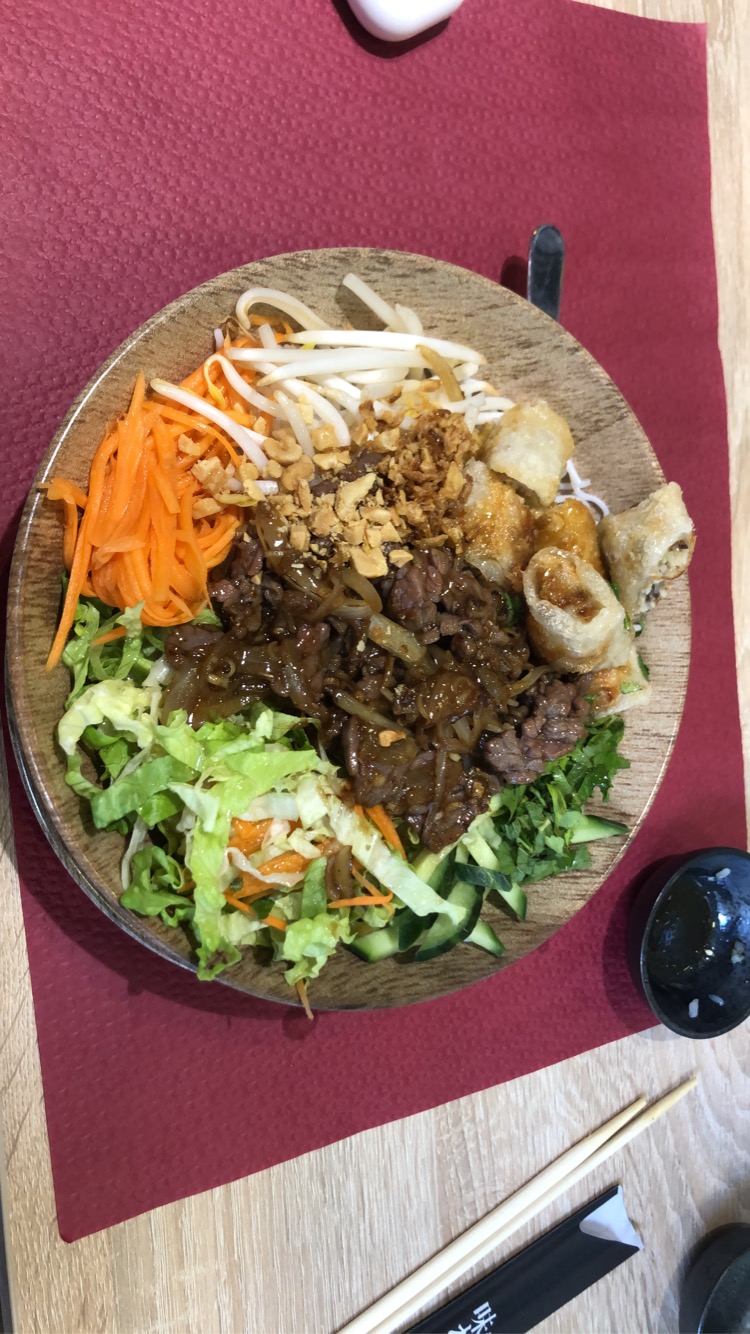 Accueil impeccable et chaleureux. Service rapide. J'ai commandé un bobun au boeuf et nem poulet à emporter qui était très copieux et surtout délicieux 😋 Je recommande à 200 % ce restaurant 🙂