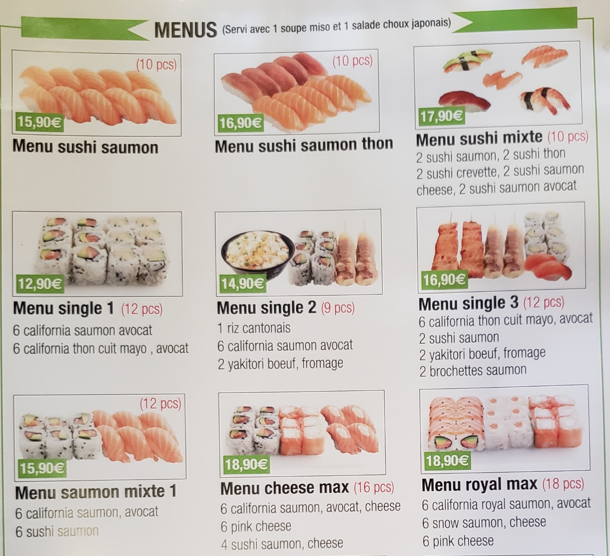Les sushis sont bons, mais c’est infernal de commander. Ils se sont trompés deux fois sur la commande, penser à prendre un traducteur à l’avenir, merci
