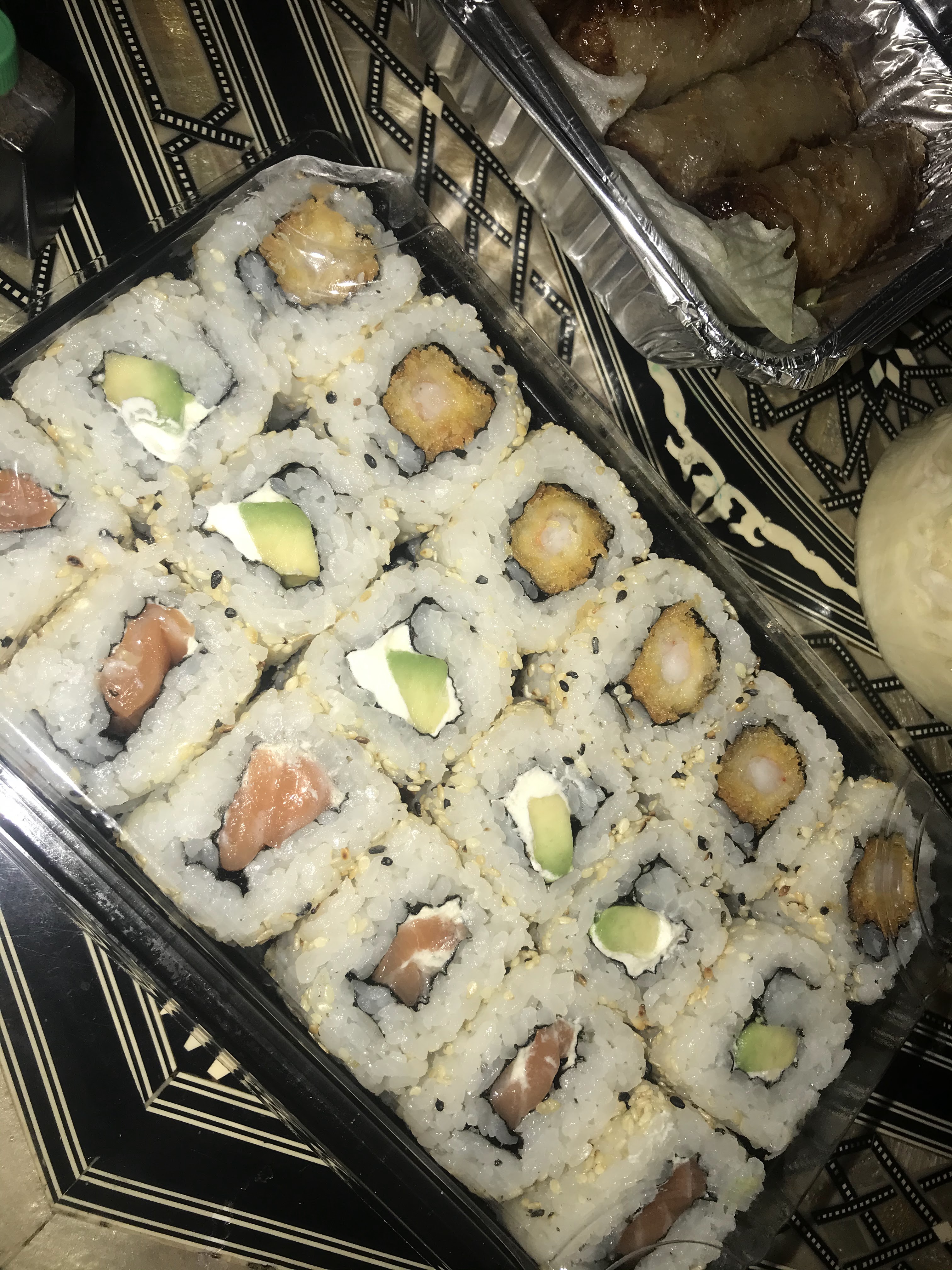 Ma soeur a commandé . Donc pour commencer, Temps d’attente de plus de 5 minutes, j’ai raccroché et rappelé plus tard, mais cette fois ci on m’a répondu assez vite, une fois répondu, j’avais l’impression de déranger Avocat noir et goût du saumon qui n’avait pas l’air frais à part les nems qui ont été bon. Je ne recommanderais plus labas