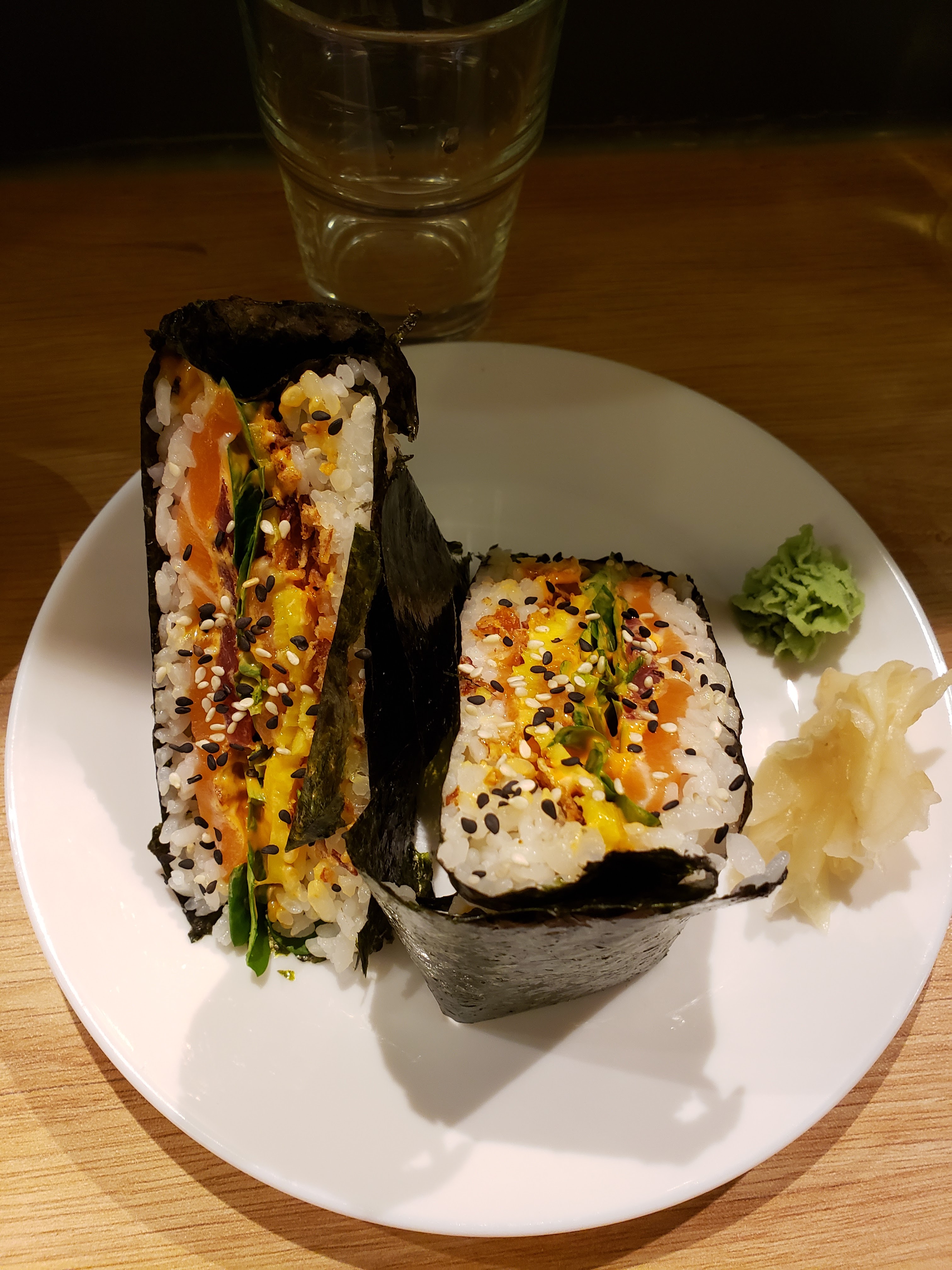 Saumon très frais! Les sushis étaient savoureux et j'ai vraiment apprécié le sashimi et le rouleau de poulet. Le personnel est également très gentil. J'aimerais que leur sauce soja ressemble davantage à celle que l'on peut trouver au Japon (c'était un peu sucré ici) mais dans l'ensemble, c'est un bon repas.