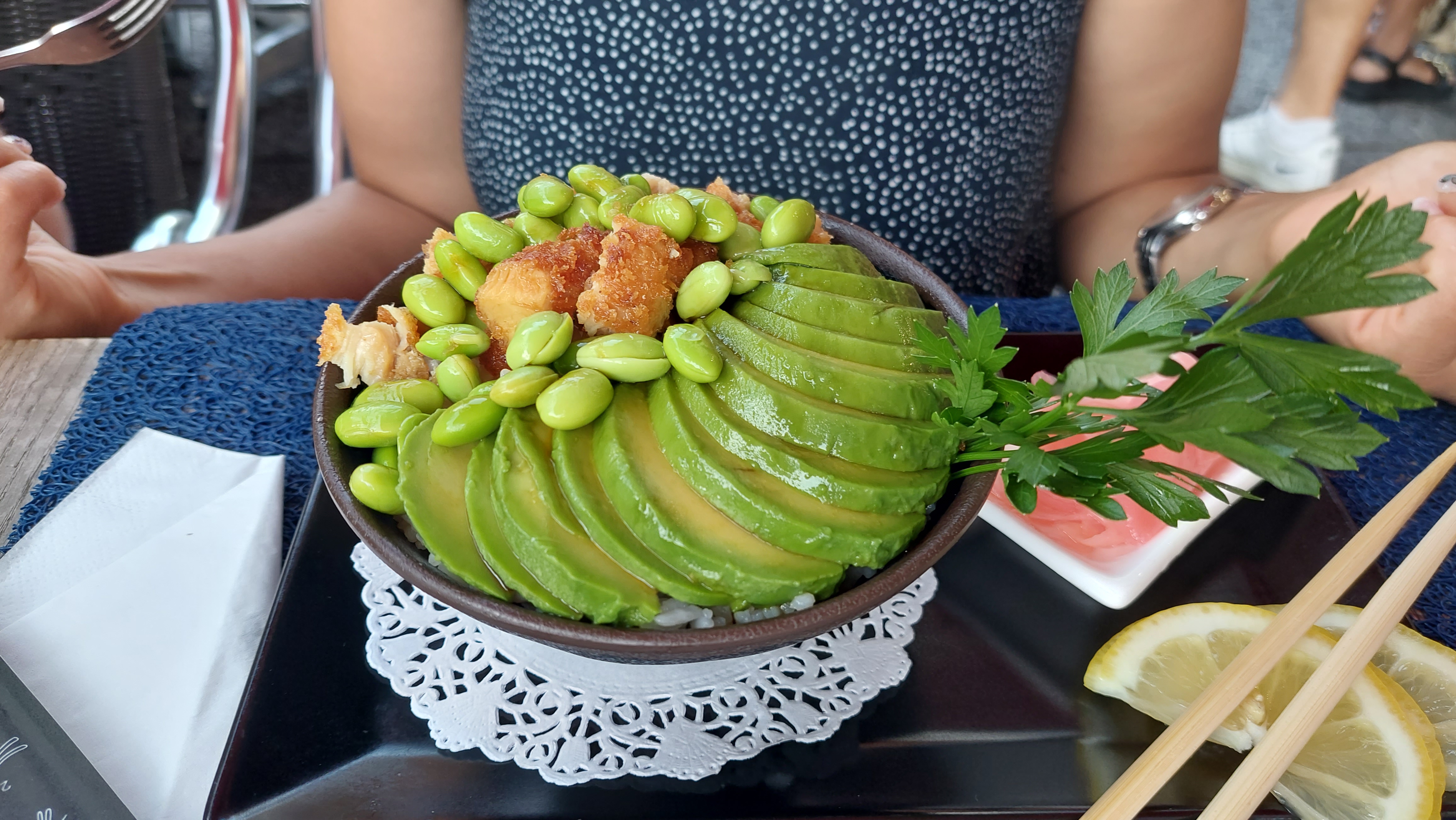 Tout les produits sont frais, mes sushis et makis ont été réalisés minute sous mes yeux. C’était savoureux, je ne regrette pas d’y avoir pris un repas à l’improviste. Attention la terrasse est assez petite.