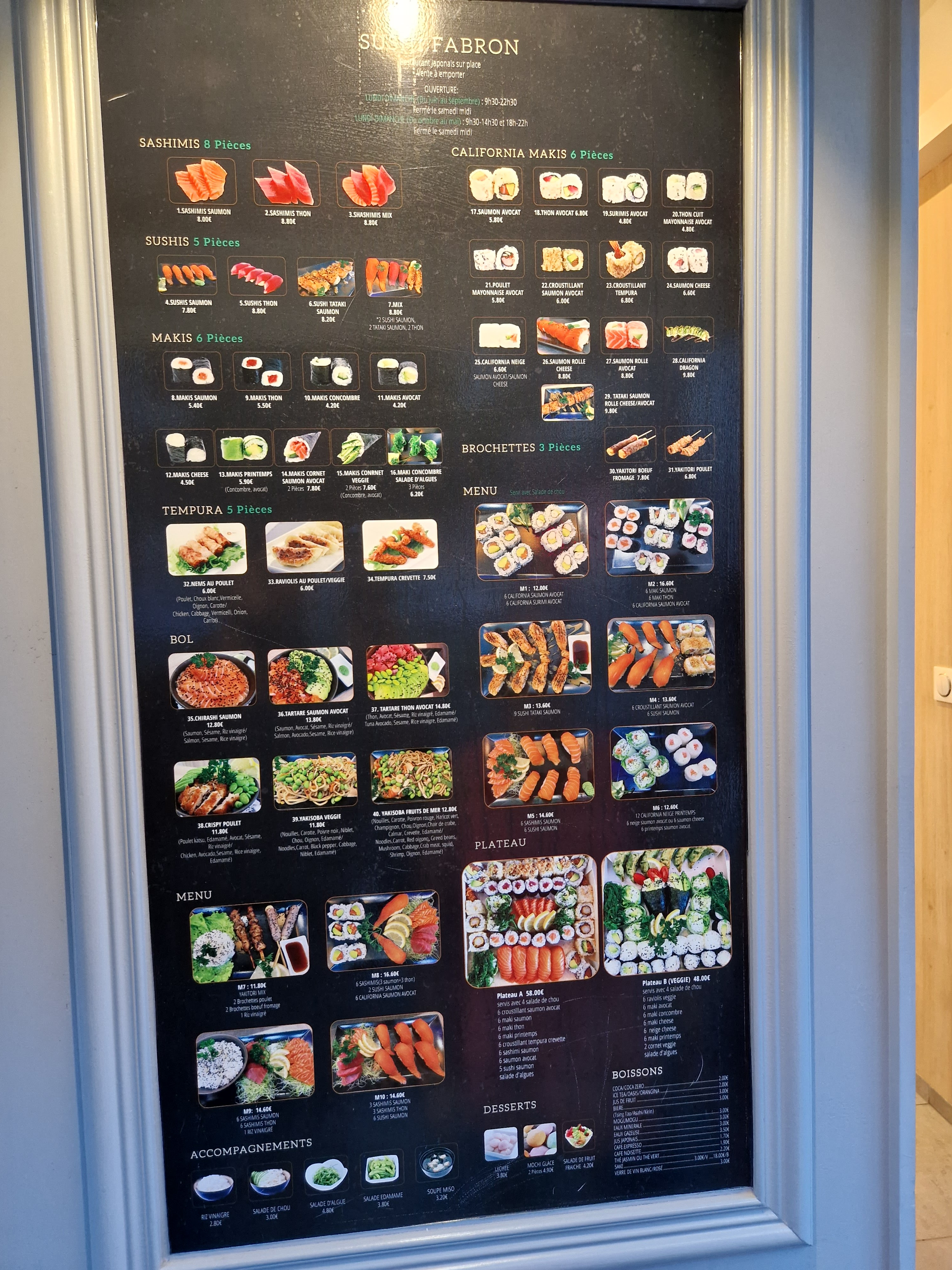 **Avis pour Sushi Fabron: ⭐⭐⭐⭐** Mon expérience chez Sushi Fabron a été globalement très positive. J'ai été impressionné par la qualité des sushis, qui étaient frais et savoureux. De plus, l'accueil était très chaleureux et le personnel était attentif à nos besoins. Cependant, un point qui mériterait d'être amélioré est le prix des boissons. Payer 3 euros pour une canette de coca me semble un peu excessif, surtout par rapport au reste du menu. Une révision de ces tarifs serait peut-être bénéfique pour offrir une expérience encore plus agréable aux clients. Malgré ce léger inconvénient, je recommande vivement Sushi Fabron pour ceux qui recherchent une délicieuse cuisine japonaise dans un cadre accueillant.