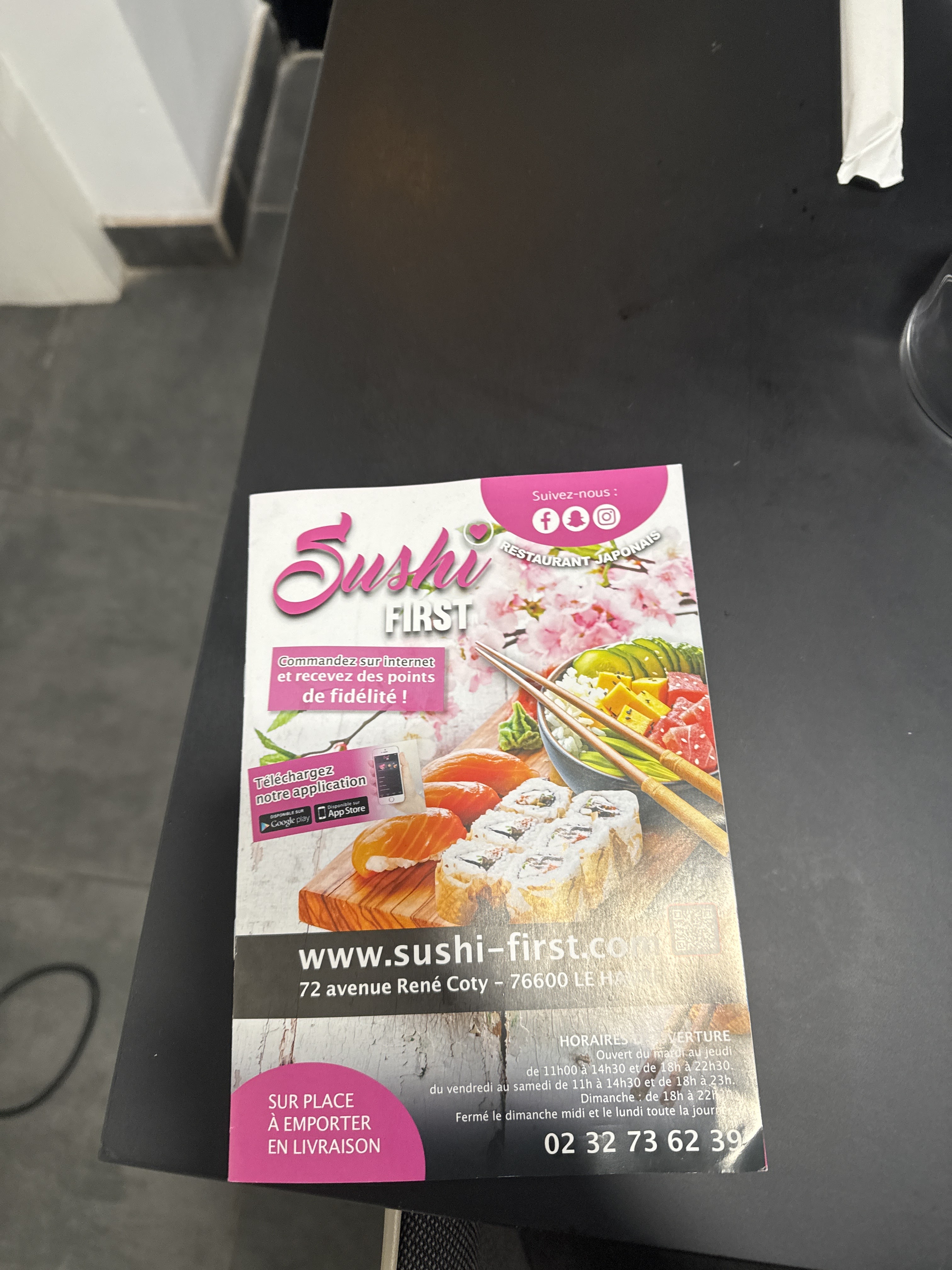 sushi first le service est très bon et rapide aussi la nourriture est fraiche