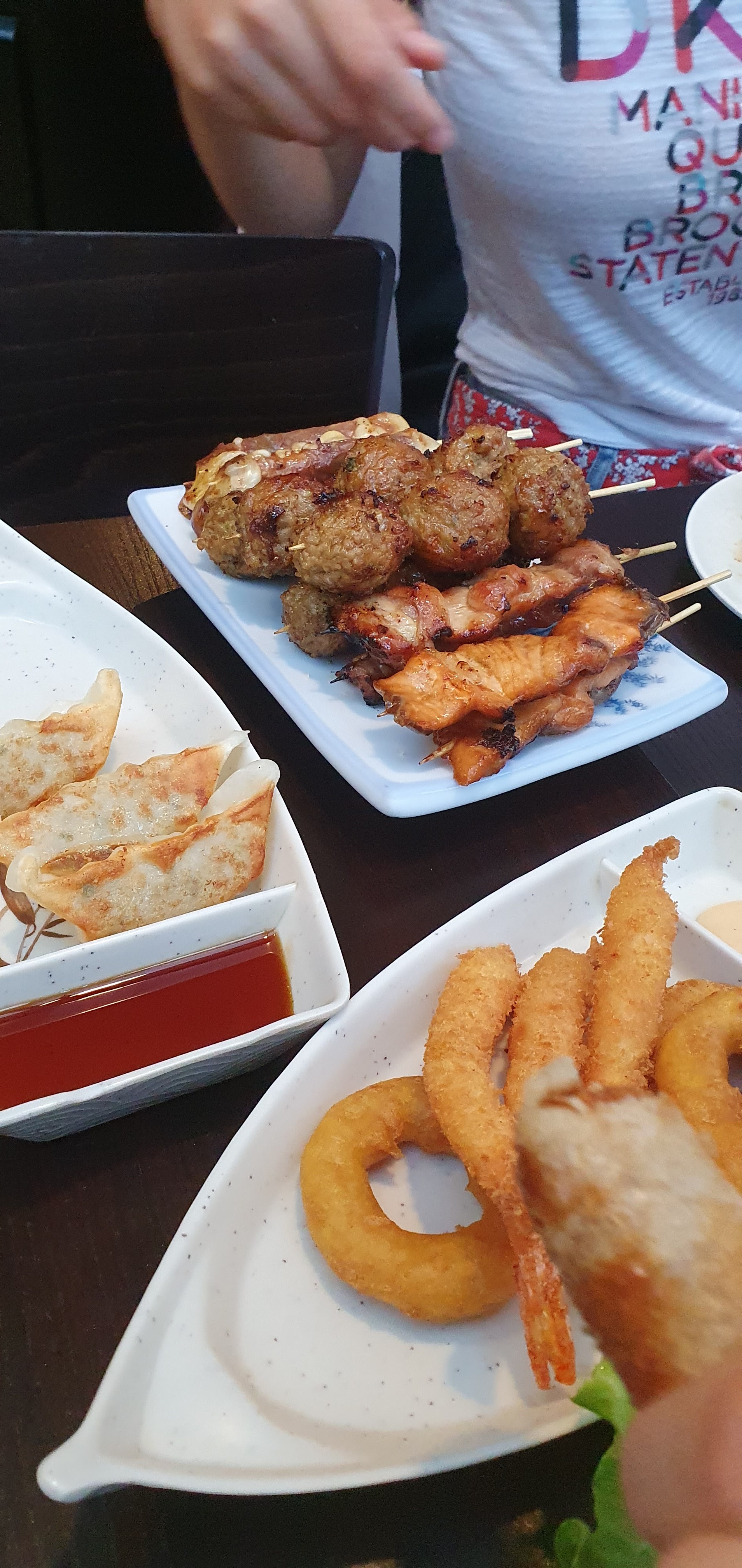 Nous y sommes allés à cinq. Nous avons commandé ce que nous voulions (brochettes, sushis, California, etc.), mais l'attente était interminable et le service très lent. Nous n'avons pu faire qu'un seul tour. C'est comme ça que ça s'est passé. Soit leur stratégie. Le pire, c'est que nous étions cinq et que tous sont tombés malades. En résumé, ce n'était pas rentable (15.90€)et les produits n'étaient pas frais ou quelque chose du genre.