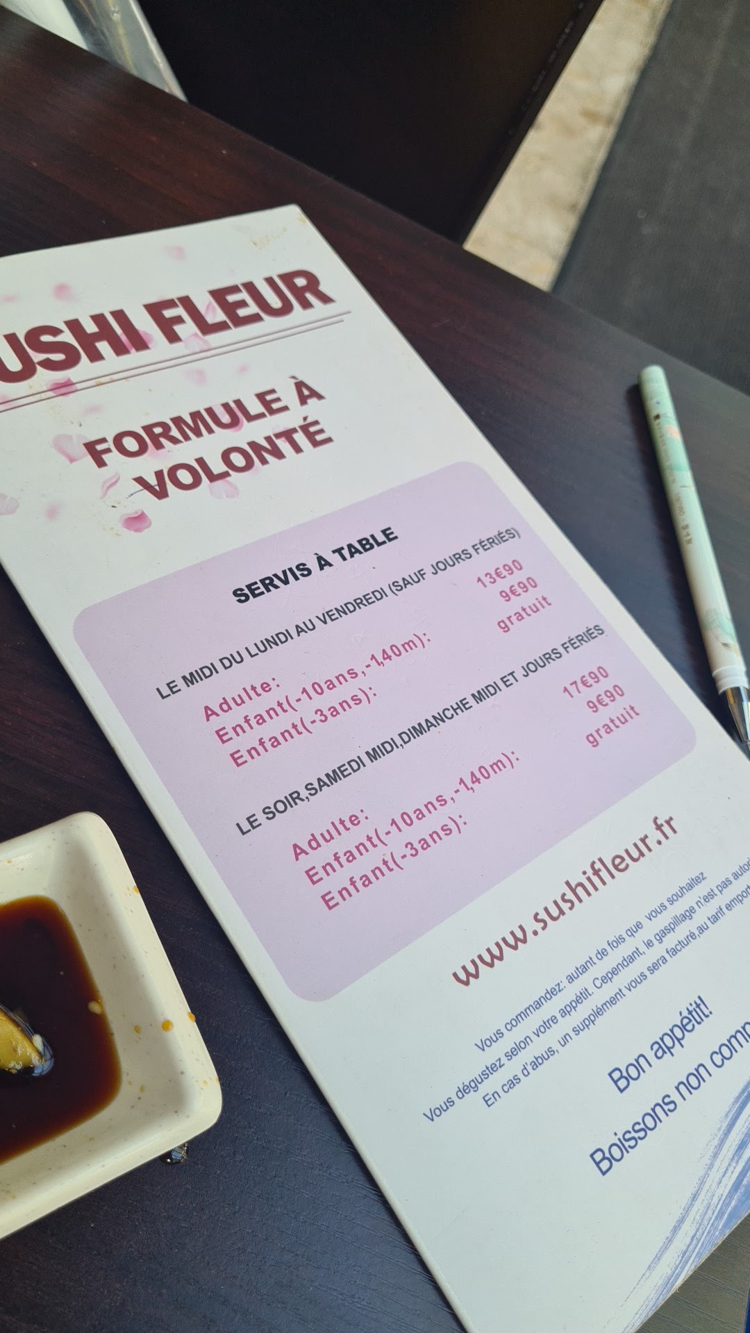 Nous venons au moins une fois par mois, mon compagnon et moi, depuis plus de deux ans. Paris, regorge de nombreux restaurants japonais proposant une formule à volonté, mais notre conclusion reste constante : Sushi Fleur demeure notre préféré. Malgré quelques oublis dans le service, les aspects positifs l'emportent : un service agréable et rapide (en tenant compte du fait qu'il n'y a qu'un serveur et un seul maitre sushi), une carte variée, des prix très raisonnables et des sushis frais et excellents. Ces cinq qualités sont inégalées ailleurs. On s’y sent bien et nous reviendrons encore et encore. Ne changez rien.