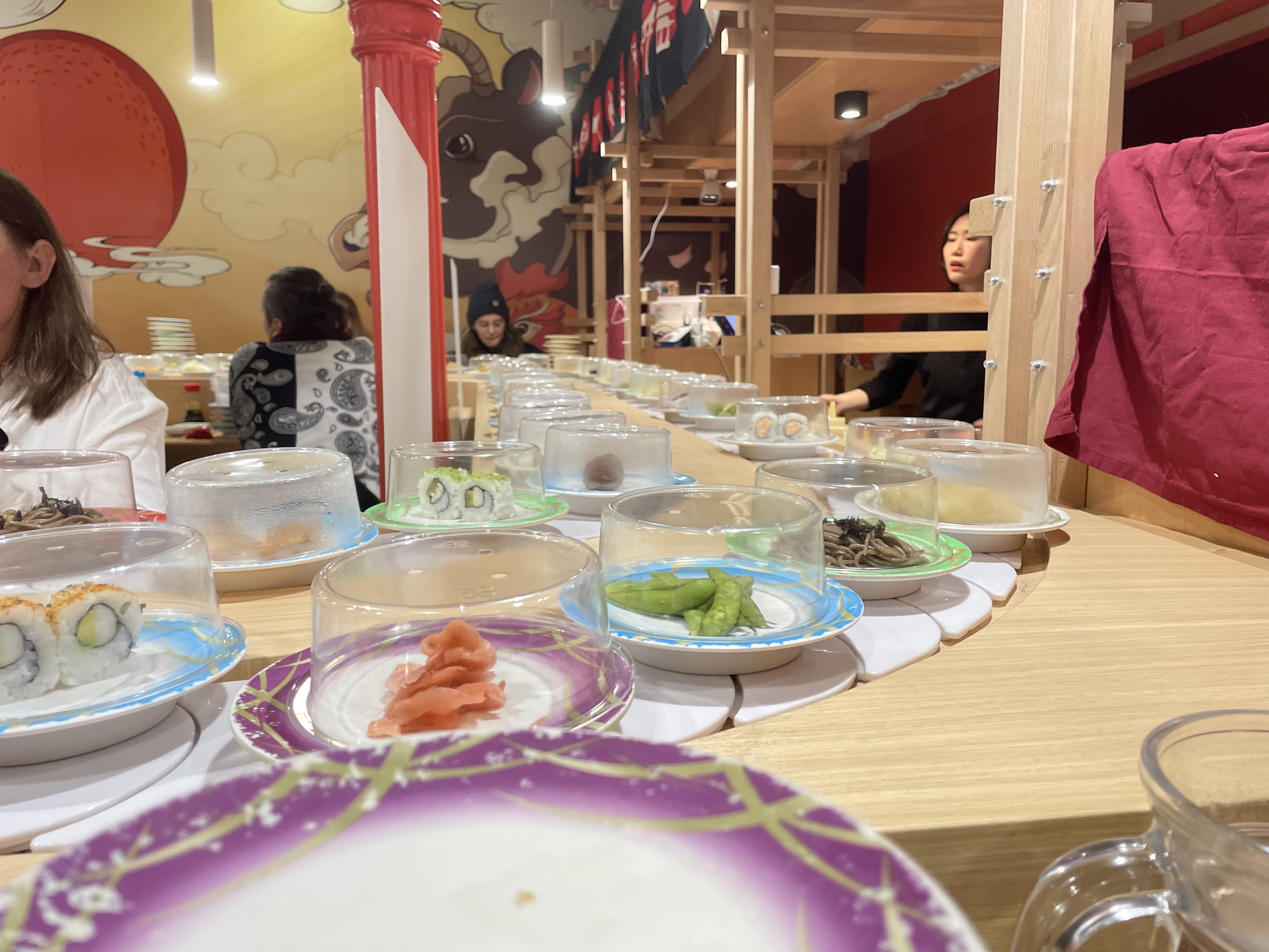 Une superbe ambiance avec ce tapis roulant de nourriture qui défile devant nous bravo
