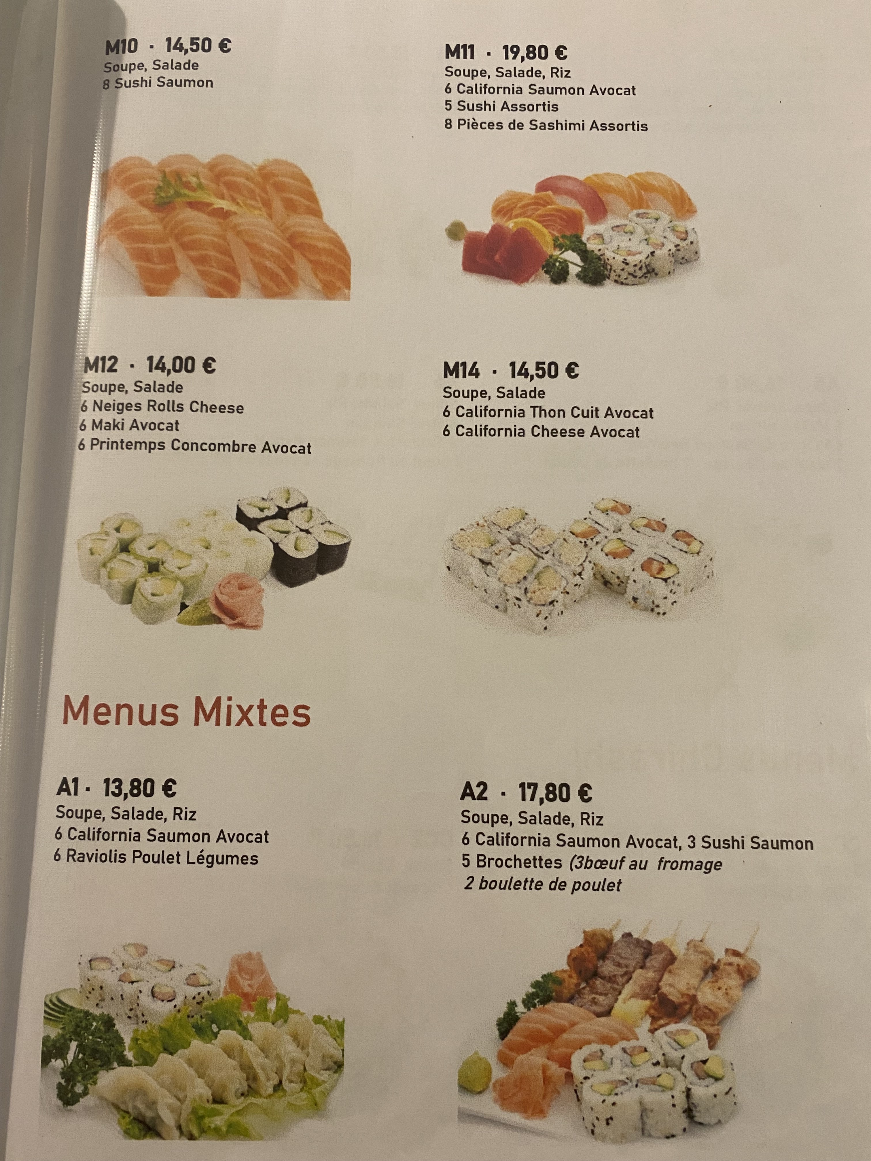 Nous y allons très souvent pour commander à emporter. Les sushis sont d’une fraîcheur et d’une qualité irréprochables. Les brochettes sont impeccables également. Nous n’avons jamais mangé sur place. J’ai testé pas mal d’adresse, celle-ci est la meilleure que je connaisse à cette heure. La personne qui me donne ma commande est très polie, toujours à l’heure et l’endroit est très propre.