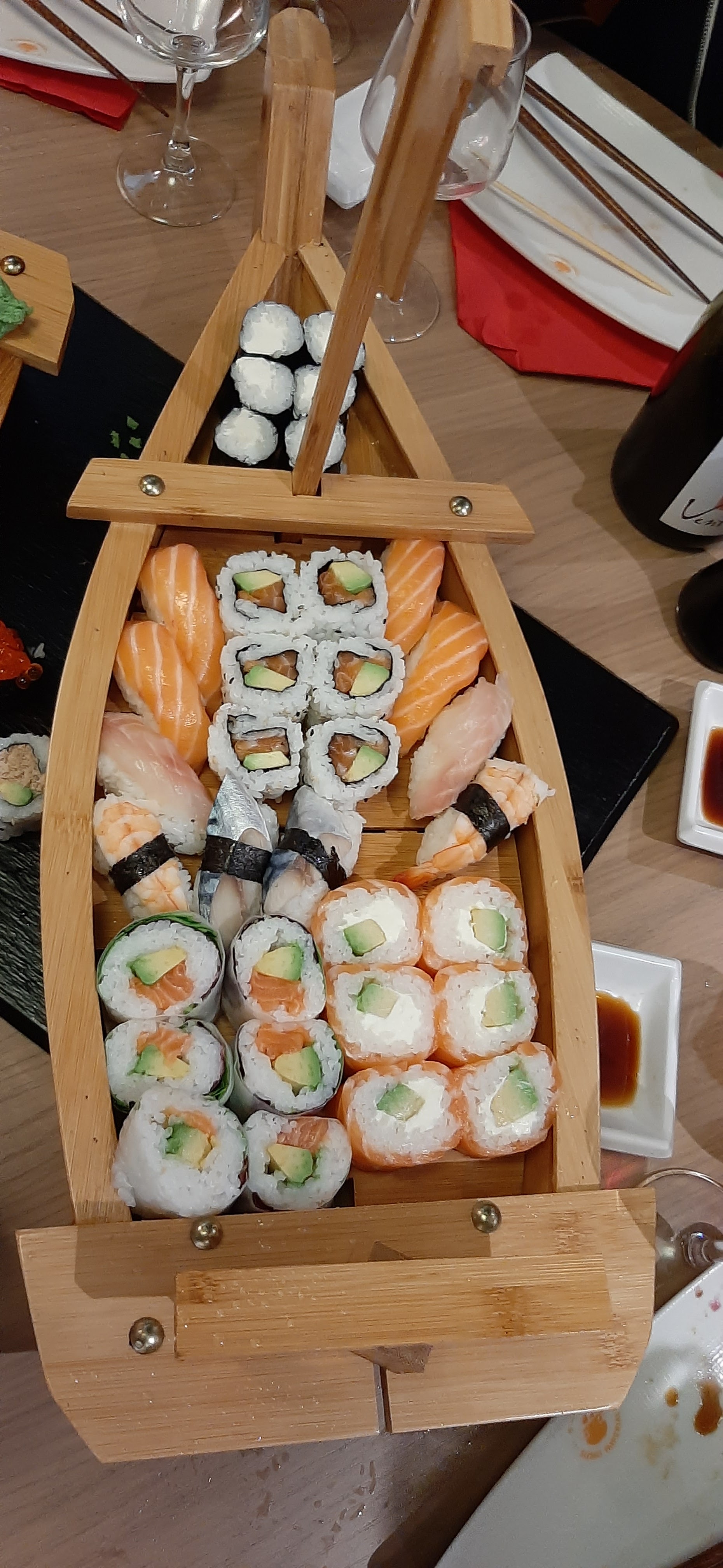 Cest sans doute le meilleur restaurant sushi de toute la région nord, croyez moi j en ai fait pleins, SERVICE au top, ACCEUIL tres agréable, on es vite fais installer dans une table, de plus un large choix de table dispo, en barre avec une chaine de makki tournate, table de 4 avec chaise ou de 6 avec fauteuil, il existe des petite salles privatives avec réservation uniquement, un univers typiquement chinois. On ce qui concerne le menue, c'est vraiment le bonheur, 3 services proposés avec 5 commandes chaque, en plus le buffet froid et dessert. La patronne est très agréable, elle fait des tours régulièrement pour discuter avec les clients et leur conseiller. Je recommande à 1000 %