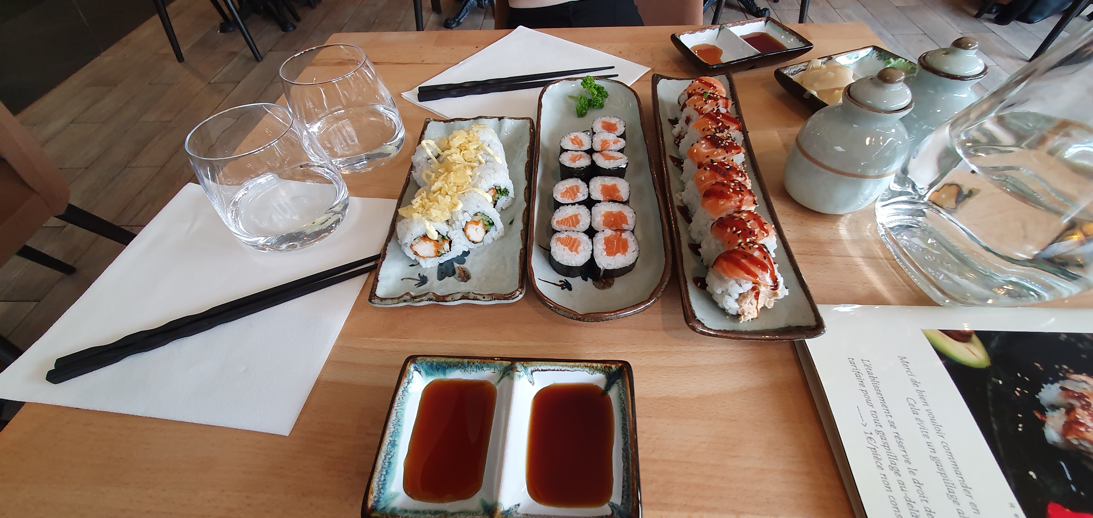 Première fois que je viens dans ce restaurant. Le cadre est sympathique. Le système de commande est top. Les toilettes sont propres. Cependant plus de papiers à usage unique, qui est a privilégié plutôt que le souffle main qui brasse l'air. Le plus grave étant la prise qui ressort faisant apparaitre les câbles à nu. Les sushis makis entre autres étais plutôt bon. Quelques lacunes côté friture ou ça manquait d'assaisonnement et les Tempuras sembler réchauffés à la vapeur. La petite attention de nous avoir mis en fond de pièces pour être plus au calme vis a vis du message disant qu'il y avait un anniversaire a été très apprécié. Mise à part les fritures je recommande si vous avez jamais essayé.