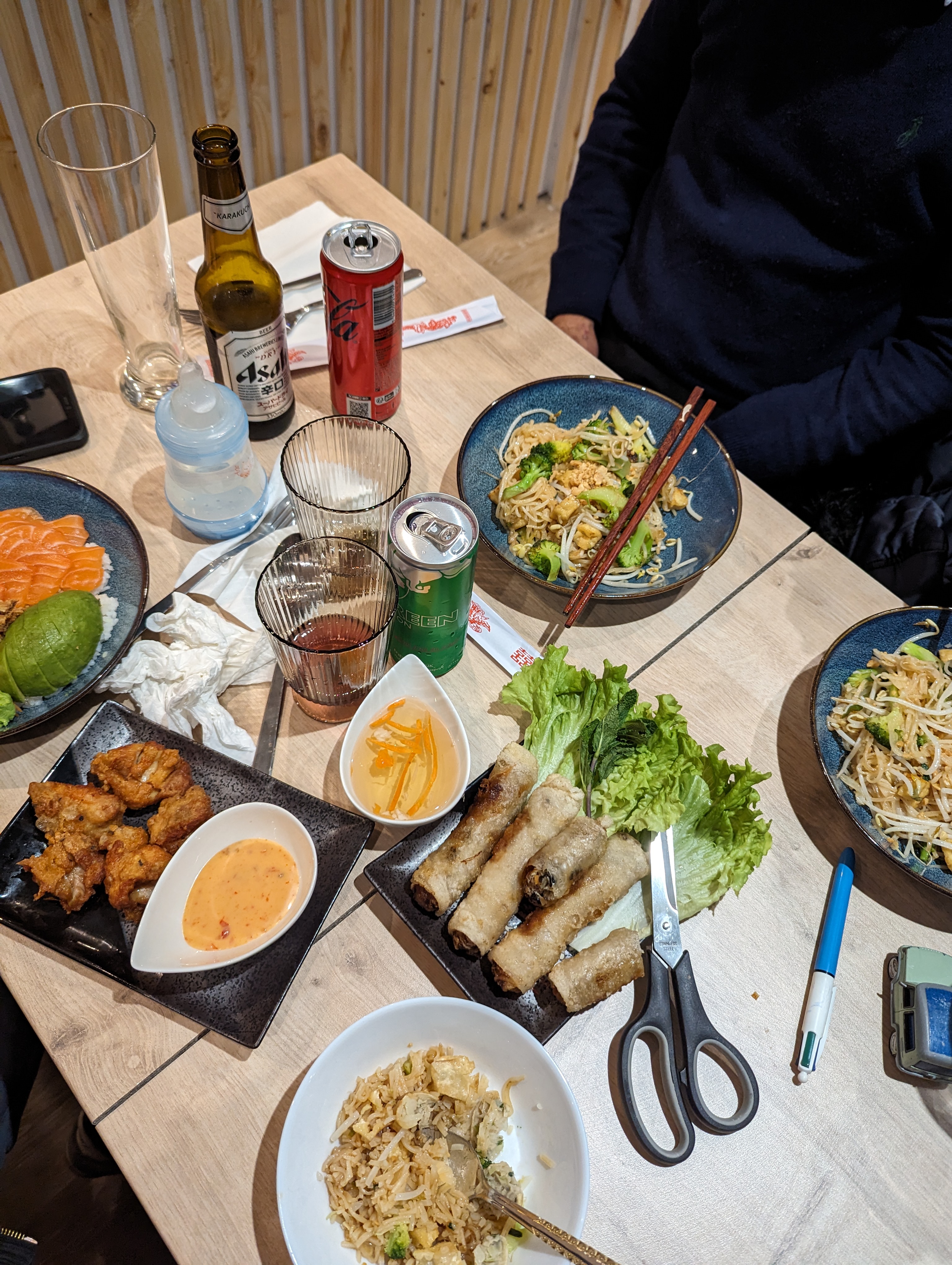 Rien à redire pas cher ,bon, personnes très aimables étant à côté je risque de revenir assez rapidement : sushi très bon et fraix ramen très bon et pad thaï incroyable aussi (petit bémol les pad thaï était un peu sec selon moi mais le goût rien a redire) et petite dégustation de shot gratuit qui n'était pas de refus .