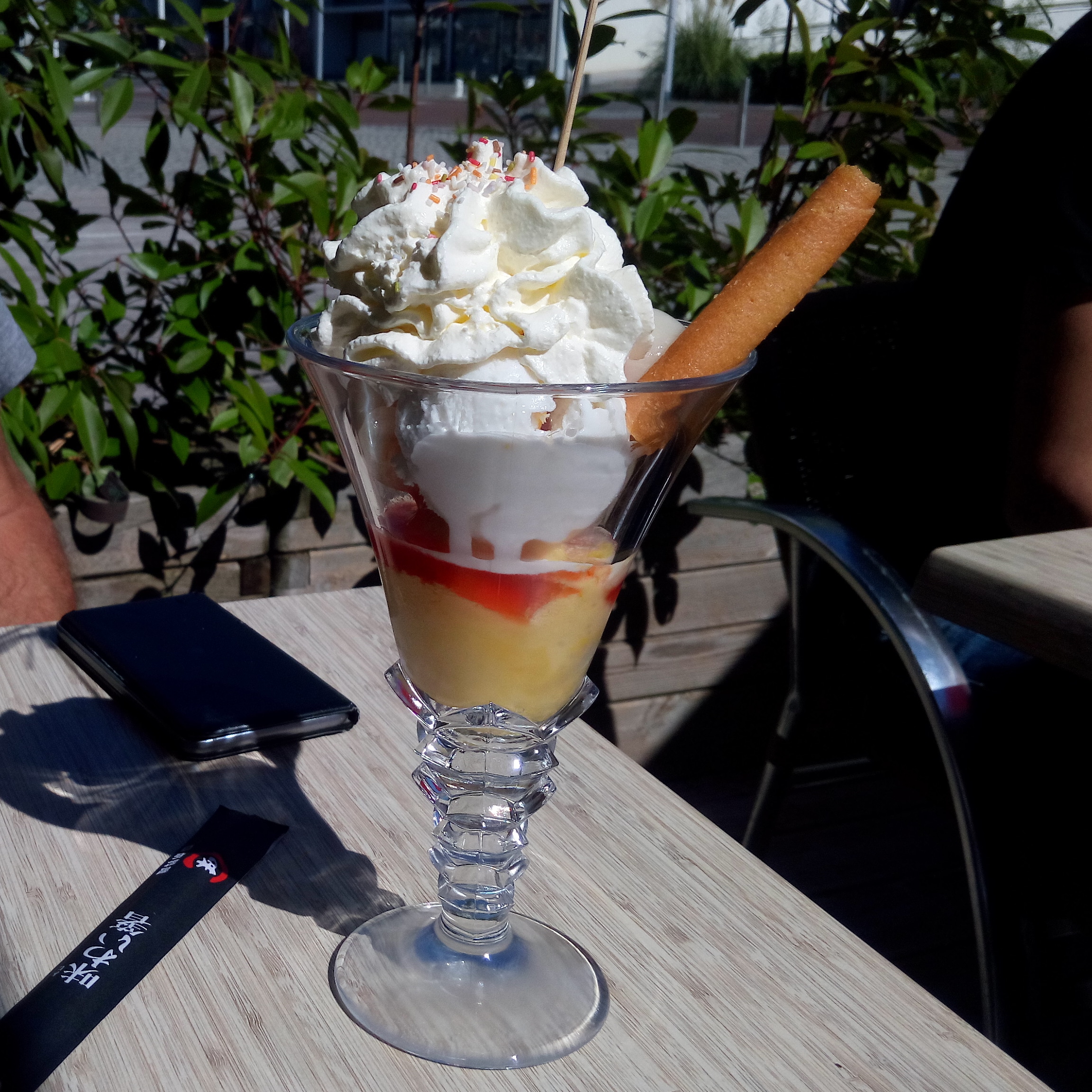 Serveuse pas aimable du tout! Nous avons demandé des cuillères pour nos filles de 3 ans et 6, on nous en a amené une sans sourire. Les serveurs se sont installés pour manger avant de nous avoir servi les desserts.Très déçus du service. Prix raisonnable