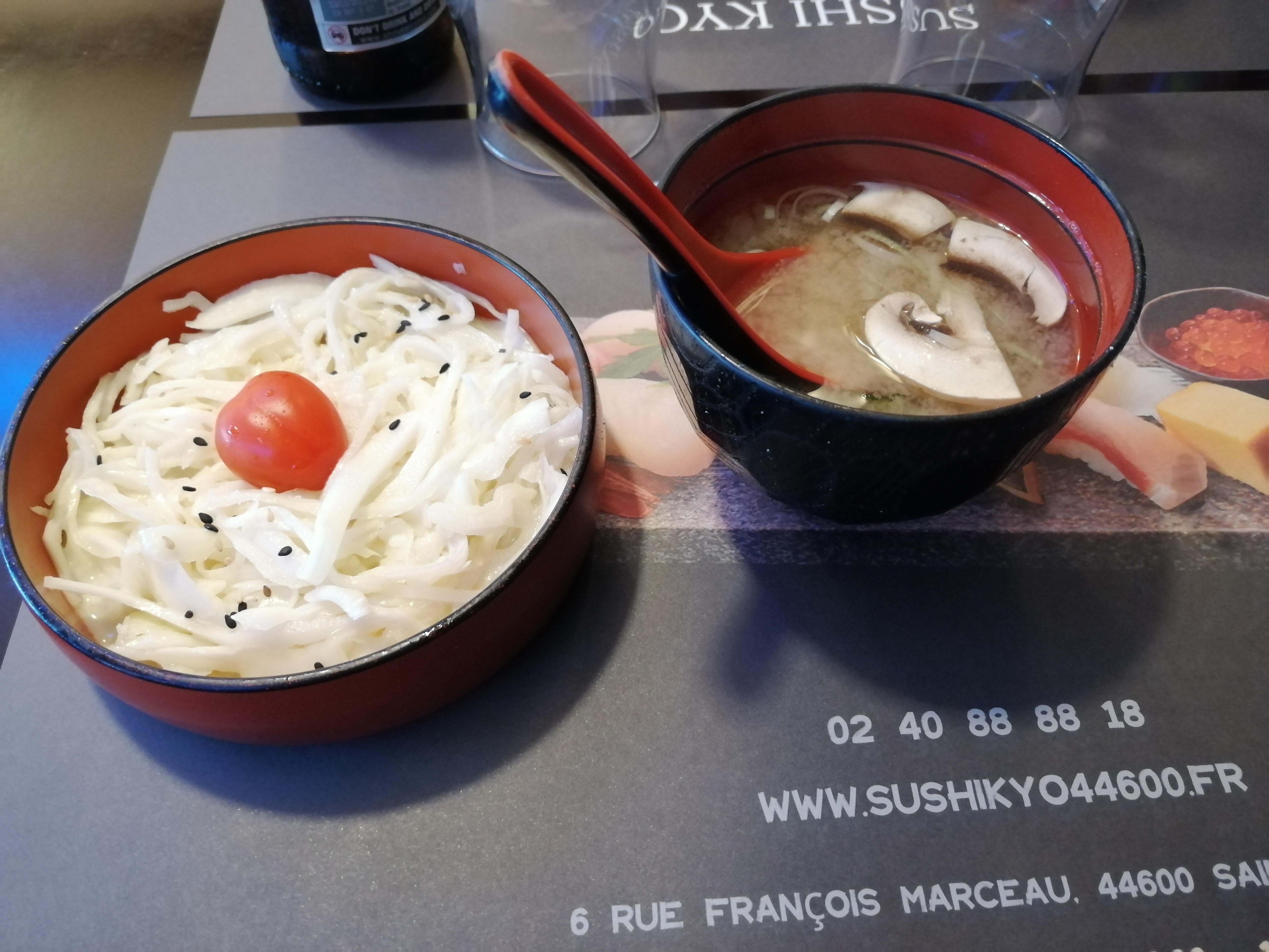 Les meilleurs sushis que j'ai pu manger ! Je recommande vivement ce restaurant, on est très vite servi notamment grâce à l'entrée offerte dans certains menu qui permet donc de patienter sans s'en rendre compte. La soupe est très bonne et goûteuse, pareil pour la salade de choux. Les sushis sont généreux en poisson et ça fait très plaisir à voir, les produits sont très frais, que ce soit le poisson, le riz ou les feuilles d'algues, tout est frais et très bon et agréable en bouche. Les guioza sont grands et parfaitement cuit (un peu croustillant à l'extérieur). Par ailleurs, j'étais très étonné mais pour 3.50€, vous avez une bonne quantité de sake japonais L'intérieur de l'enseigne est agréable, décoration authentique et personnel serviable. Je recommande vivement ce restaurant.